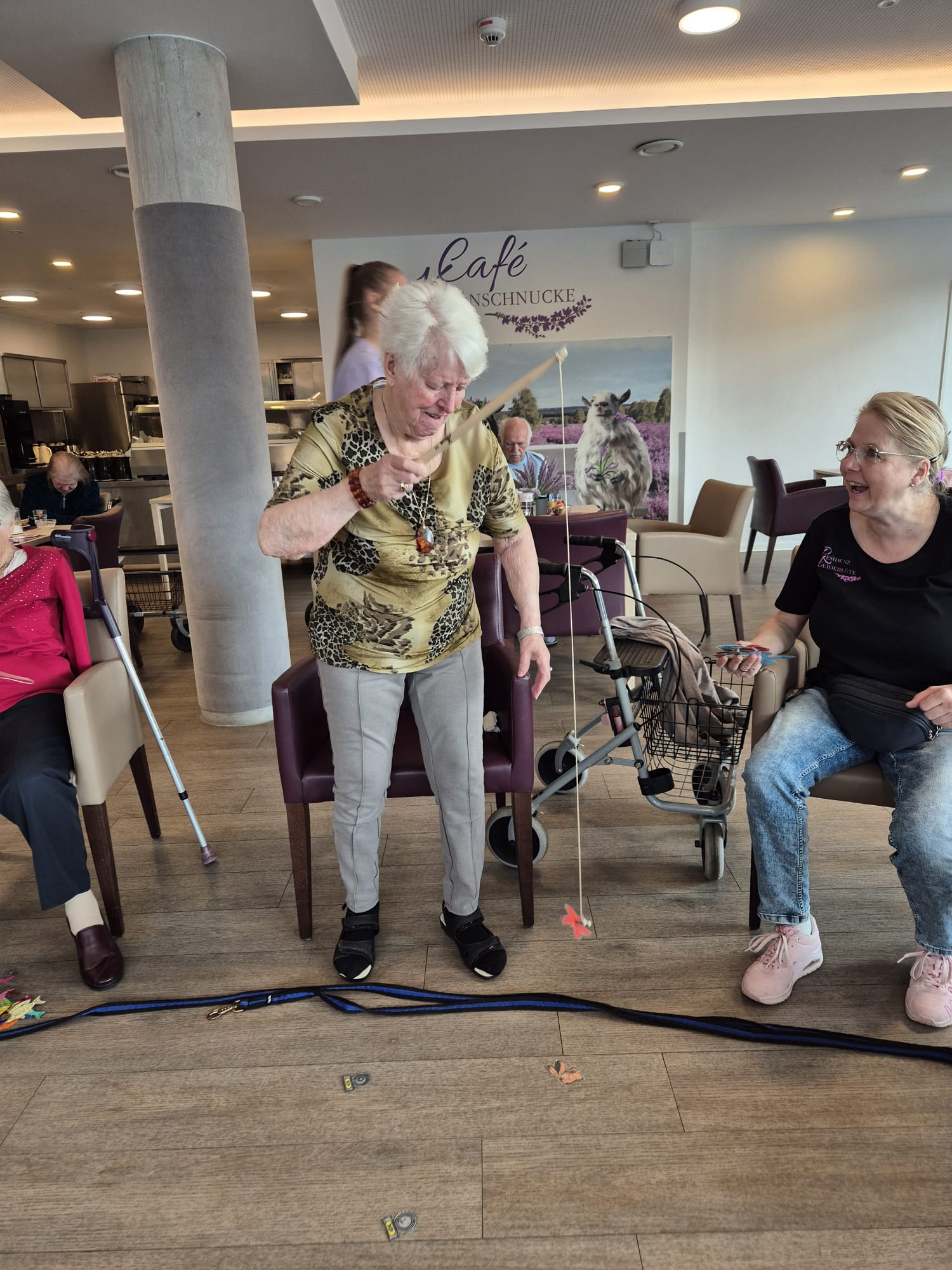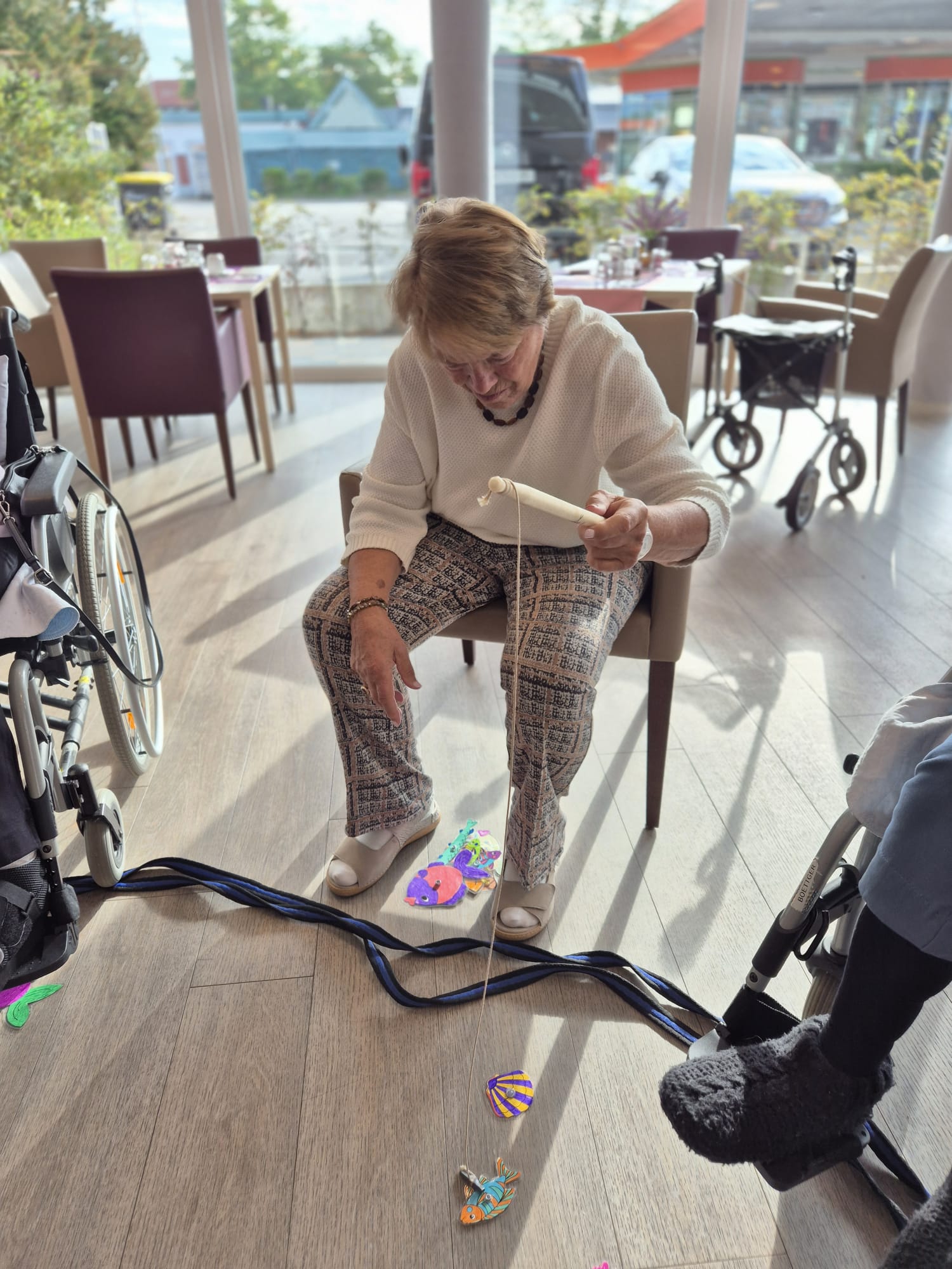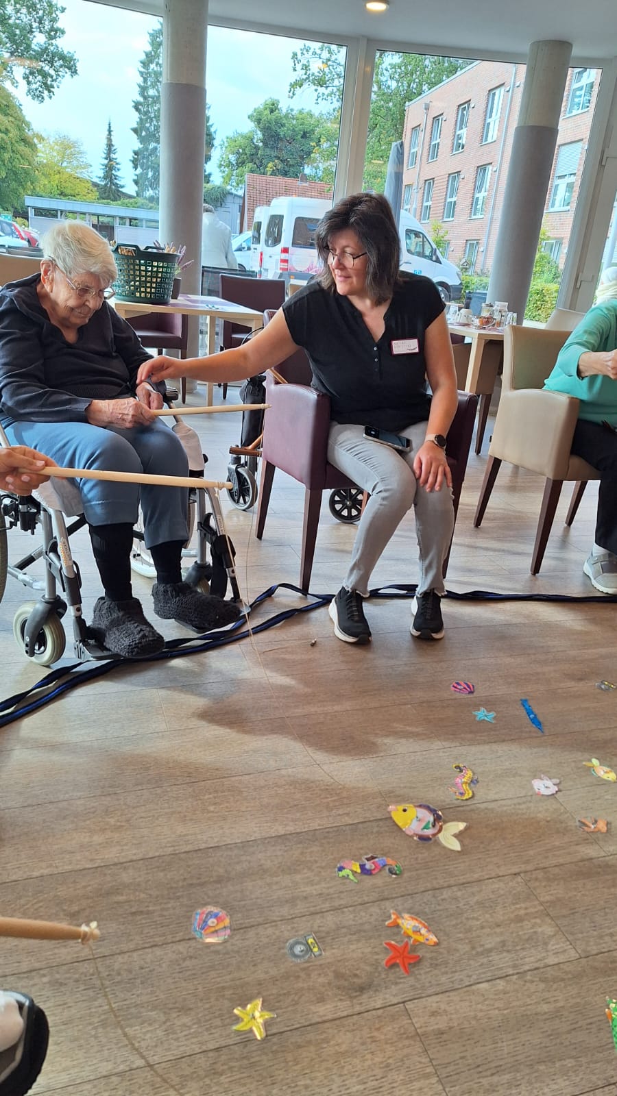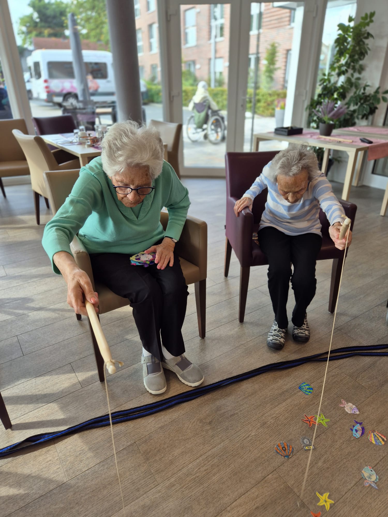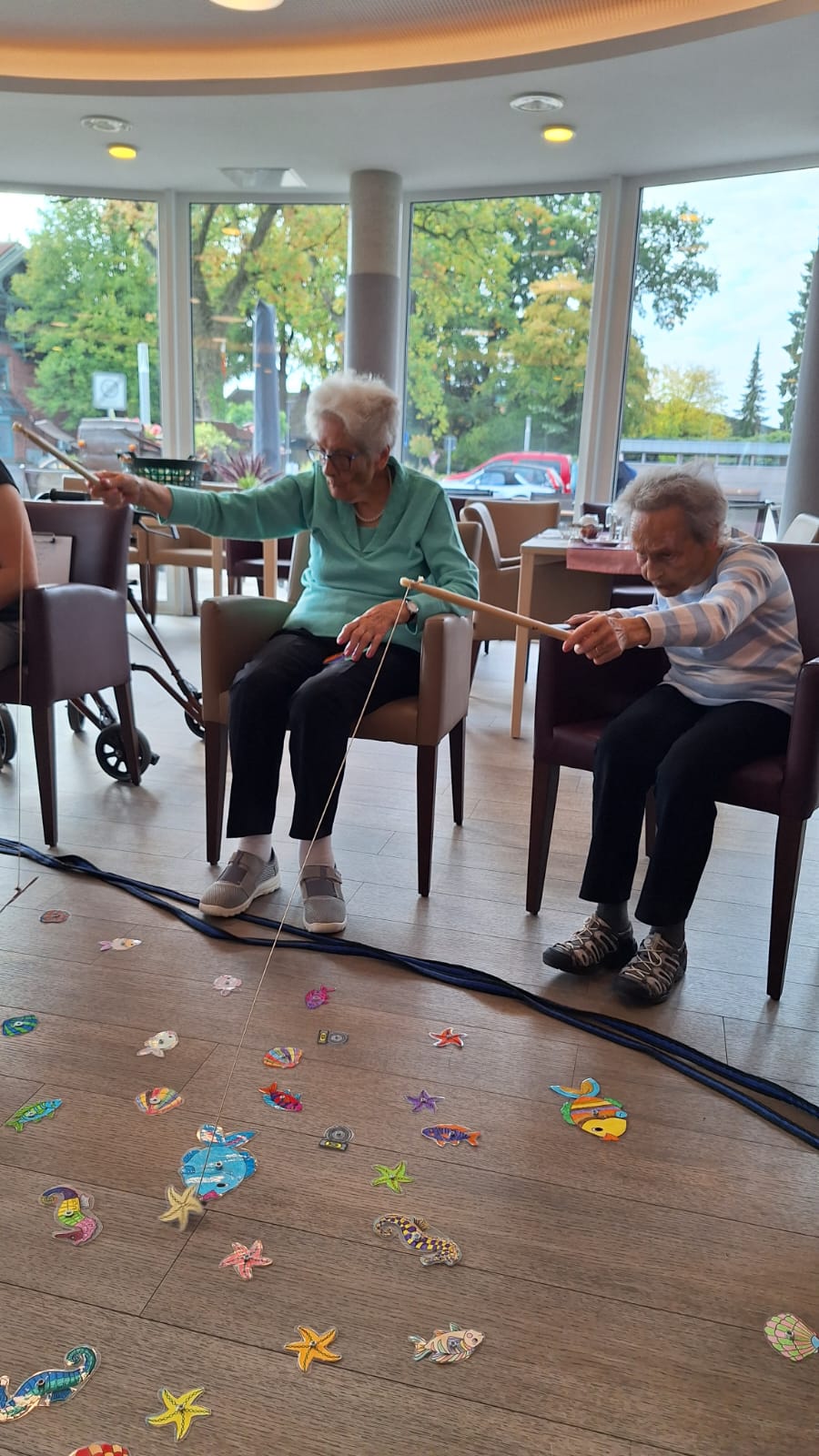 Am Nachmittag haben unsere BewohnerInnen wieder ihr selbstgebasteltes Spiel „Fische angeln“ ausgepackt.