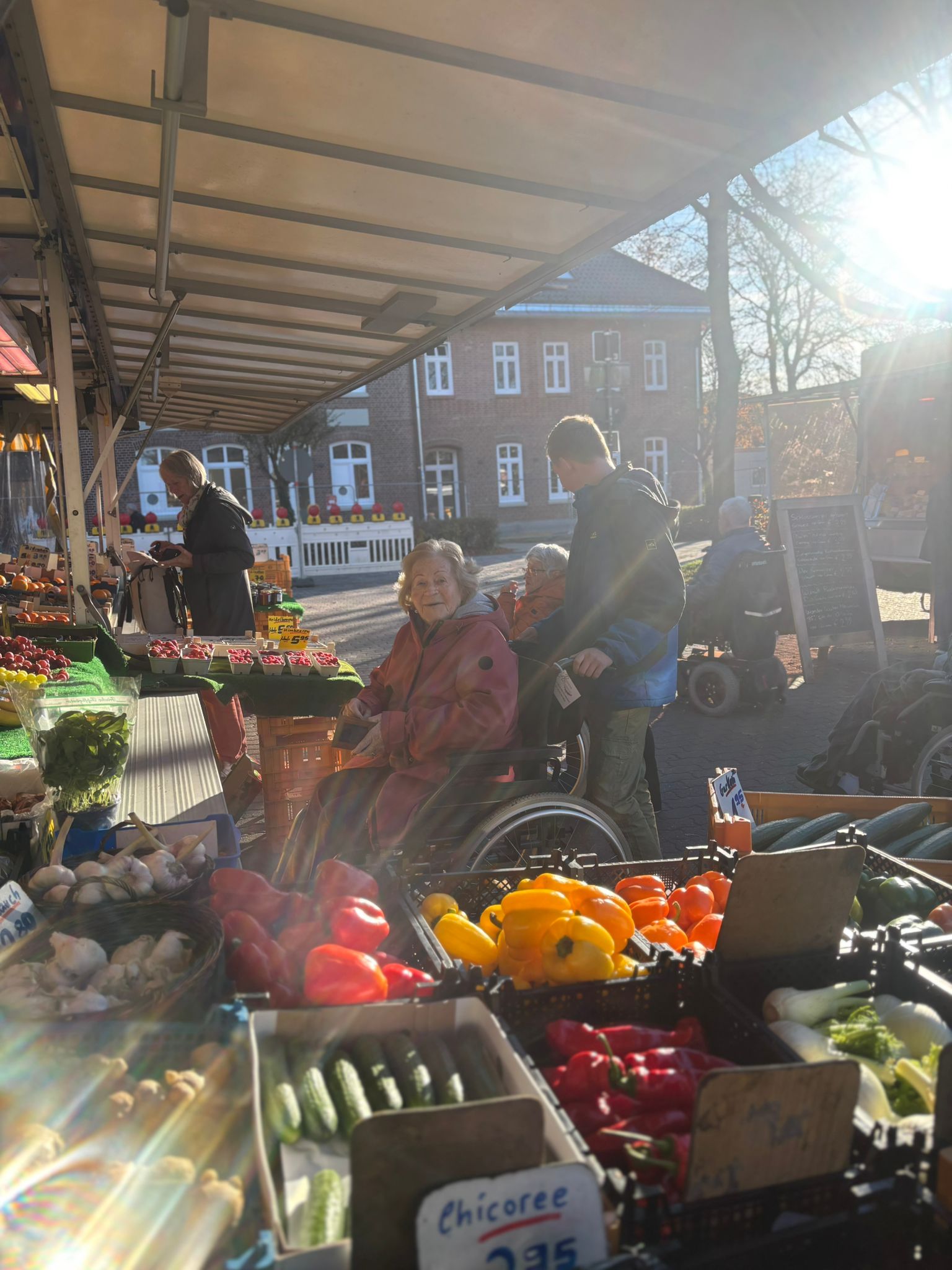 Unsere BewohnerInnen haben Donnerstagvormittag den Wochenmarkt unsicher gemacht – frisches Gemüse, nette Gespräche und jede Menge gute Laune! 😄🍅
