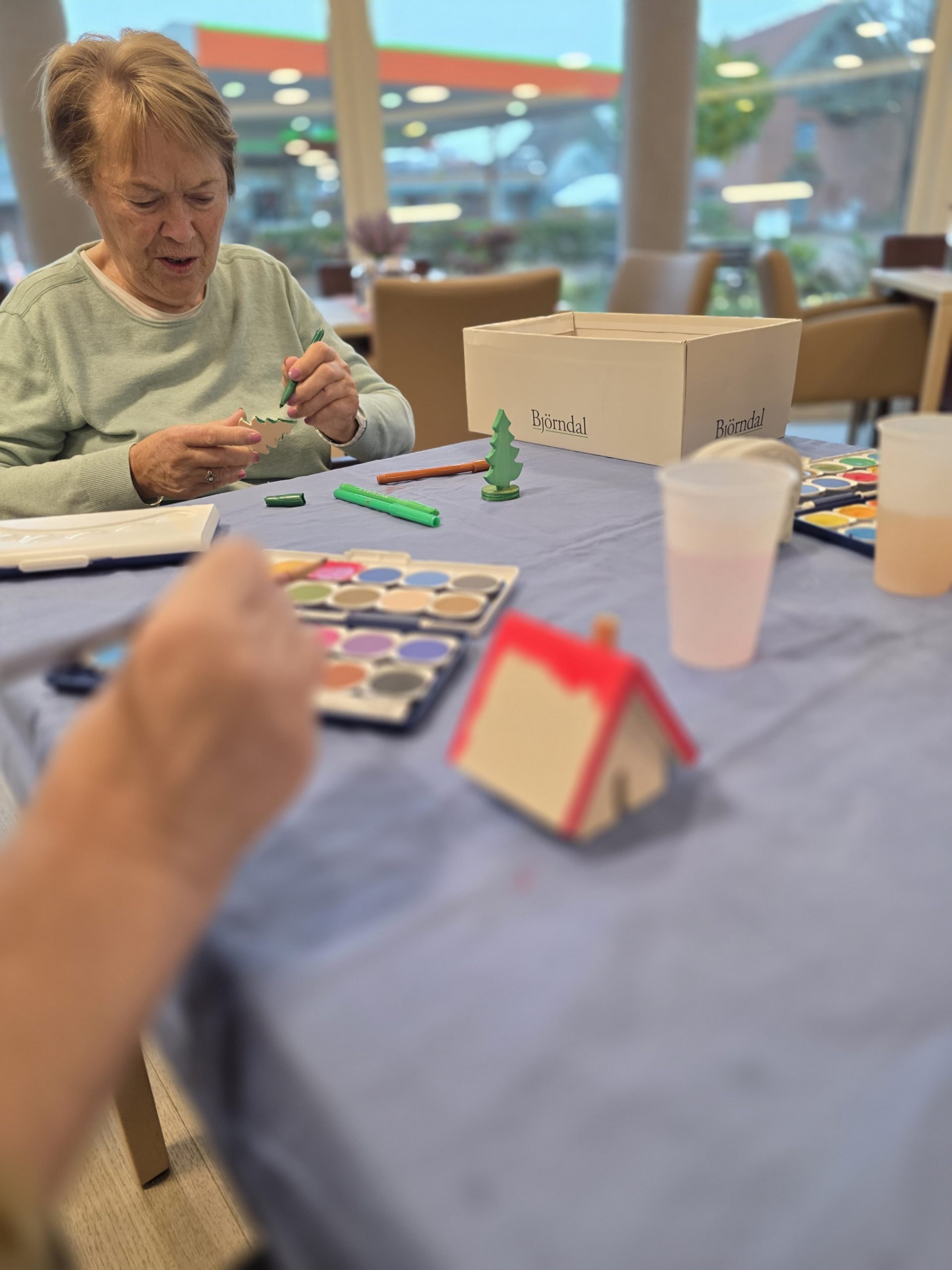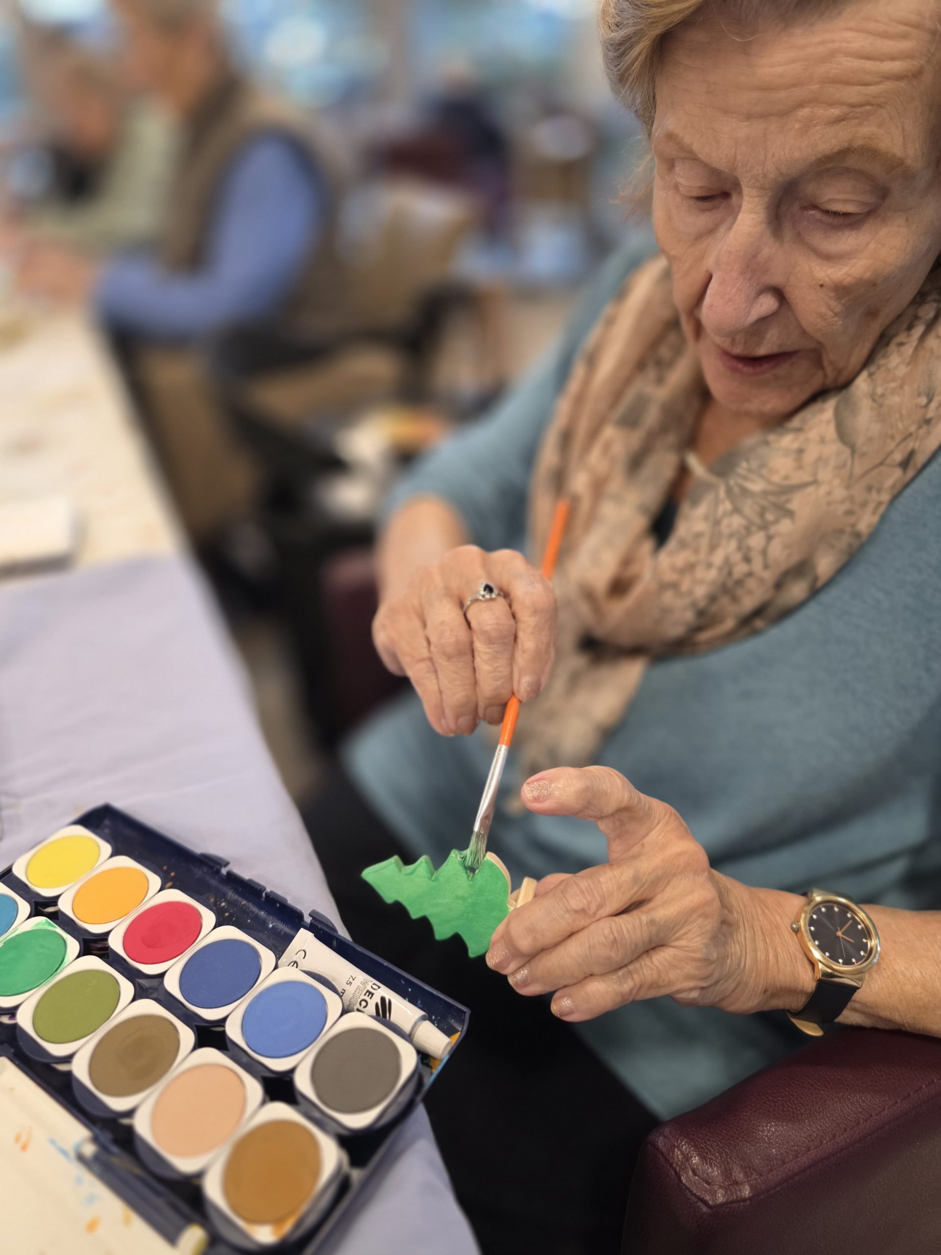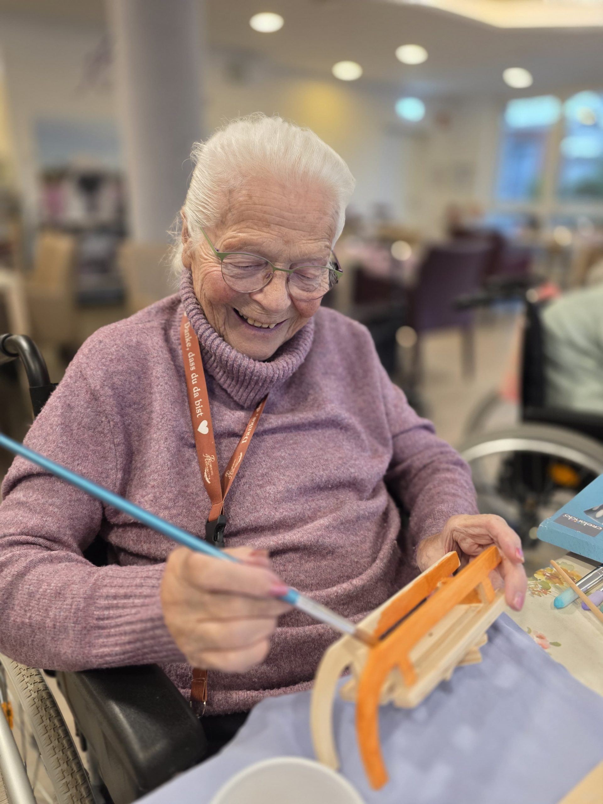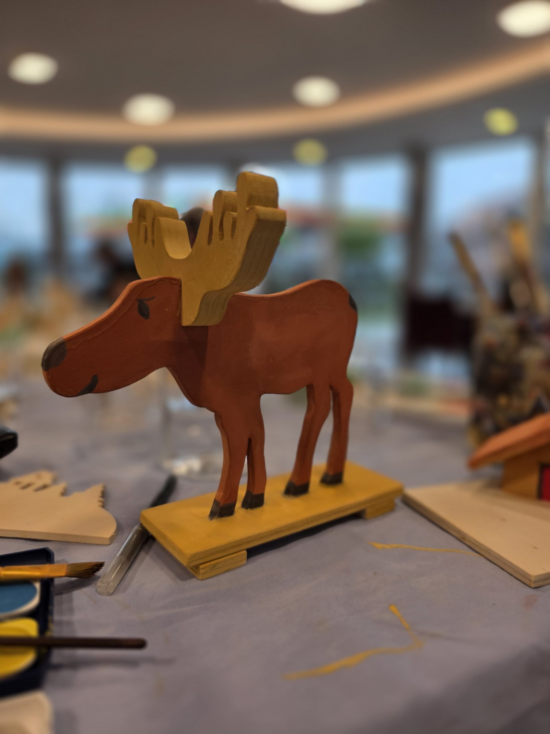 Gemeinsam mit den BewohnerInnen wurden kleine Holzdekorationen für die Weihnachtszeit bemalt – darunter Häuschen, Schlitten, Tannenbäume und viele süße Rentiere.