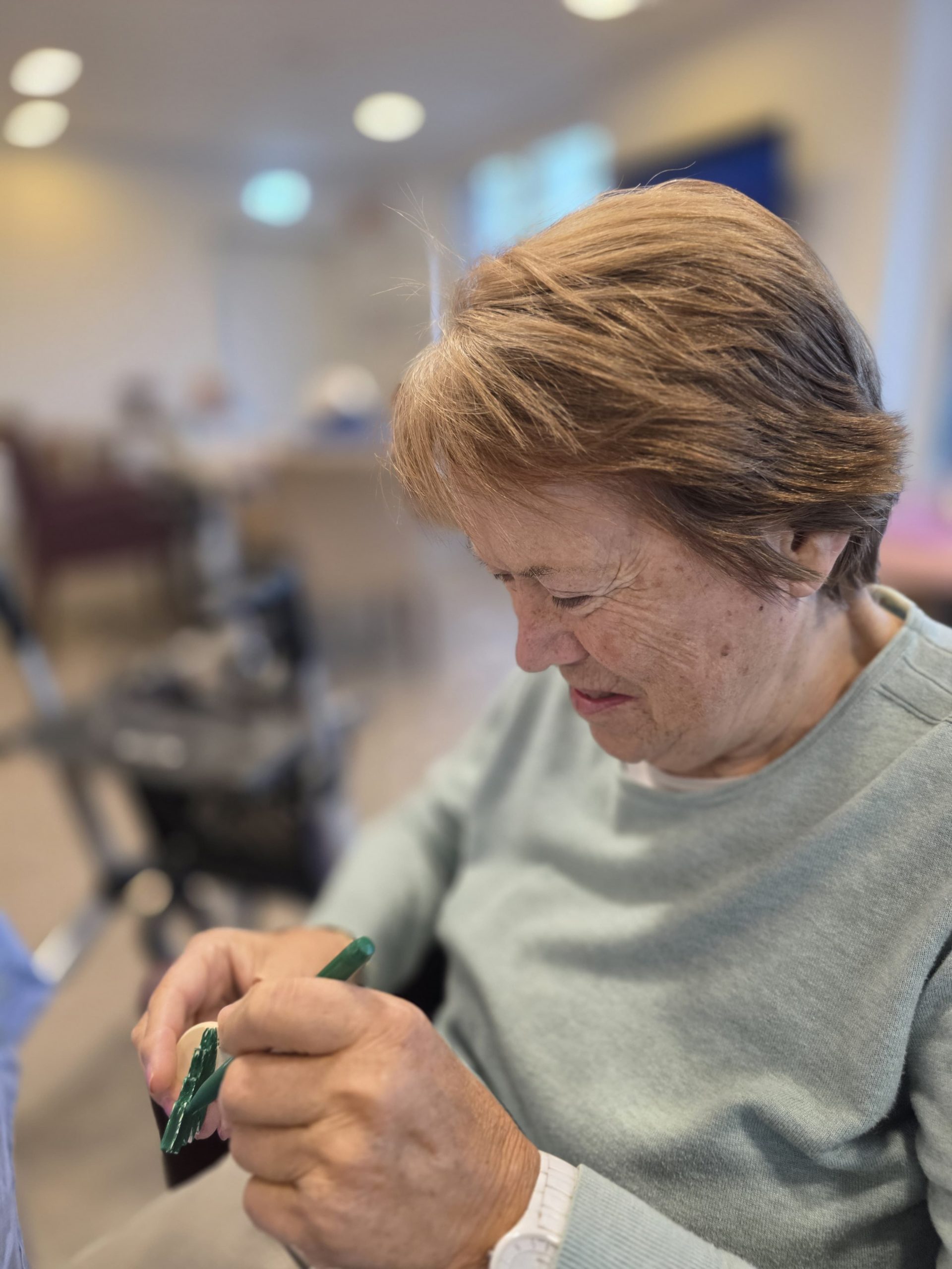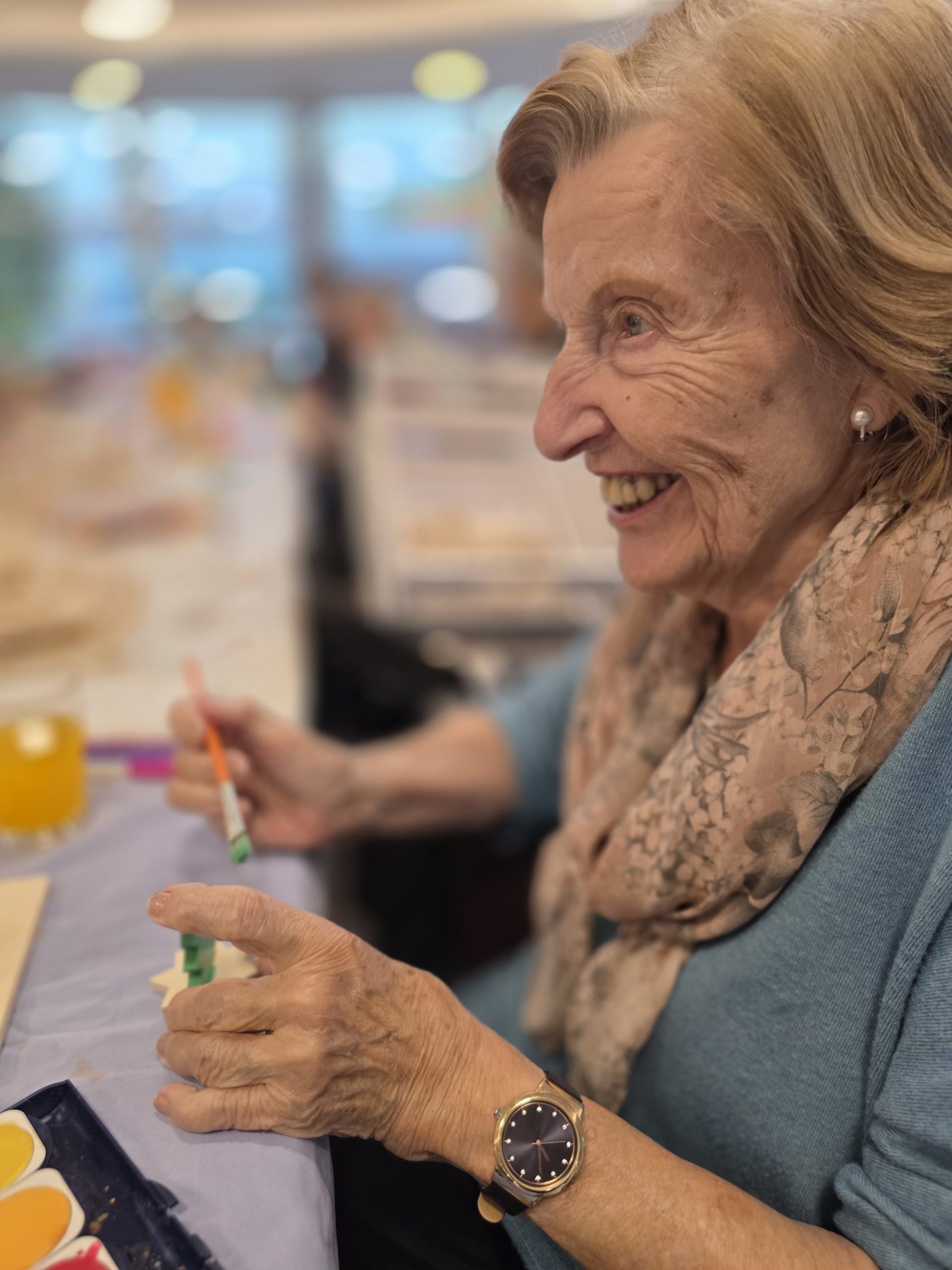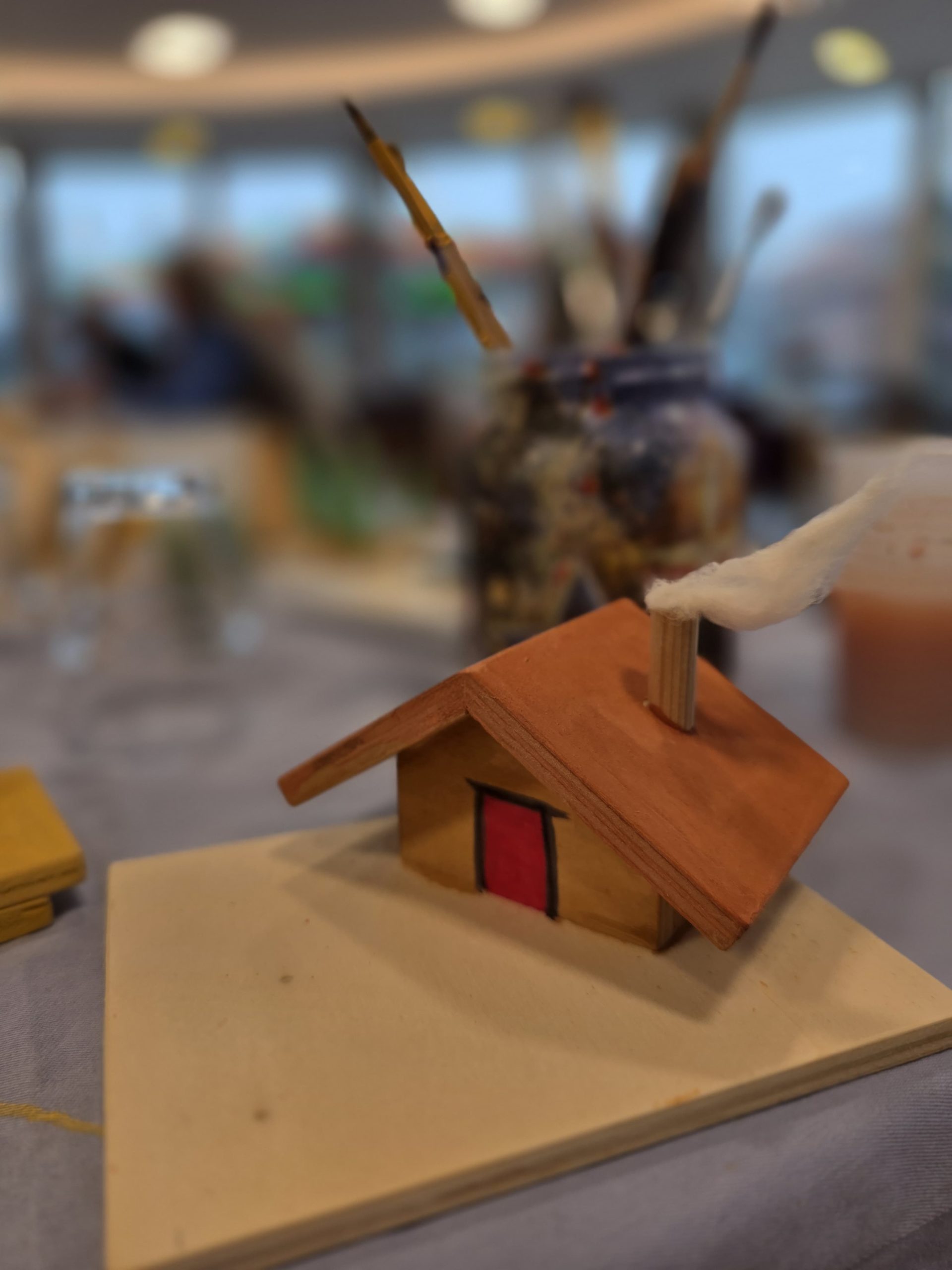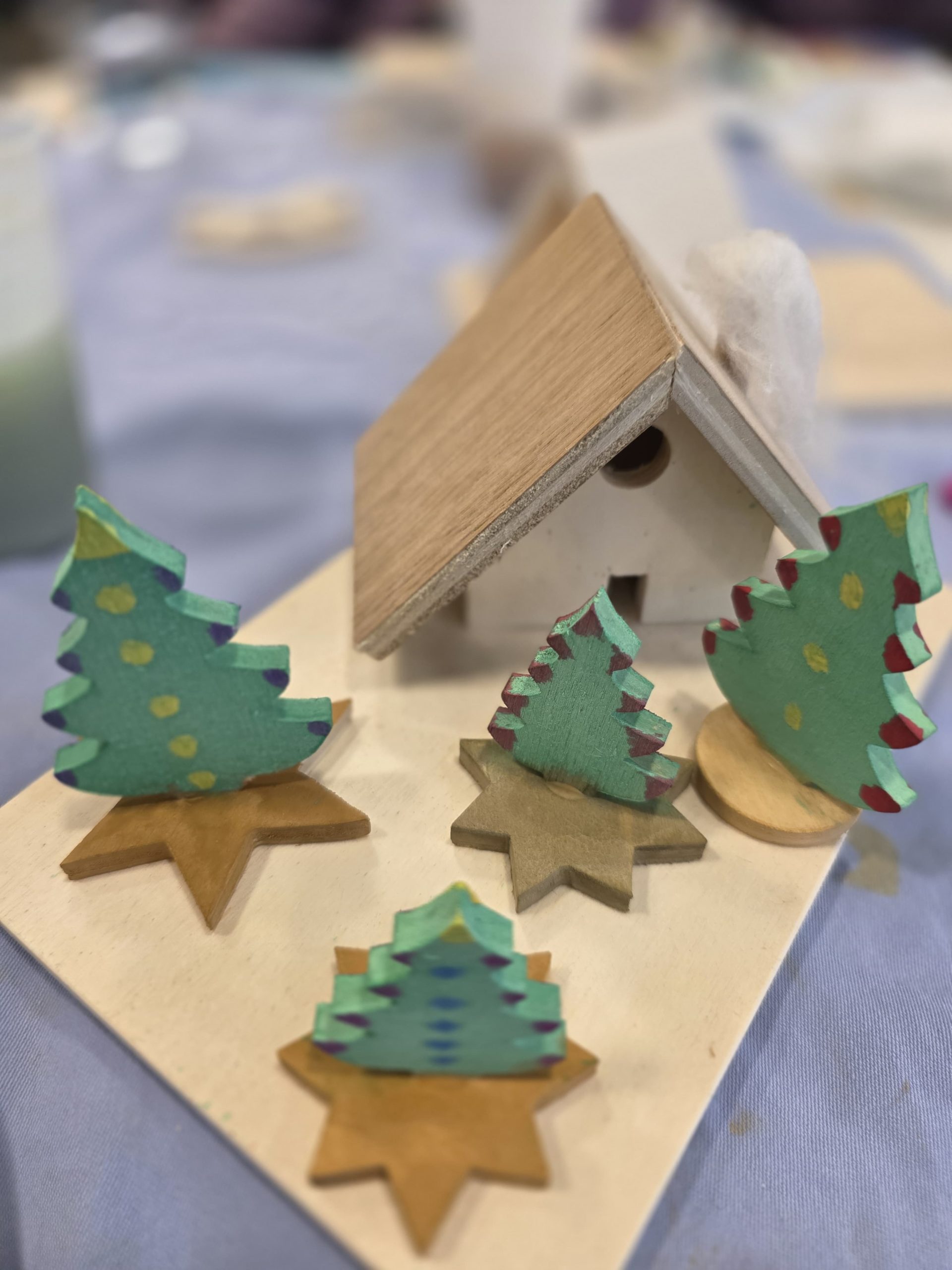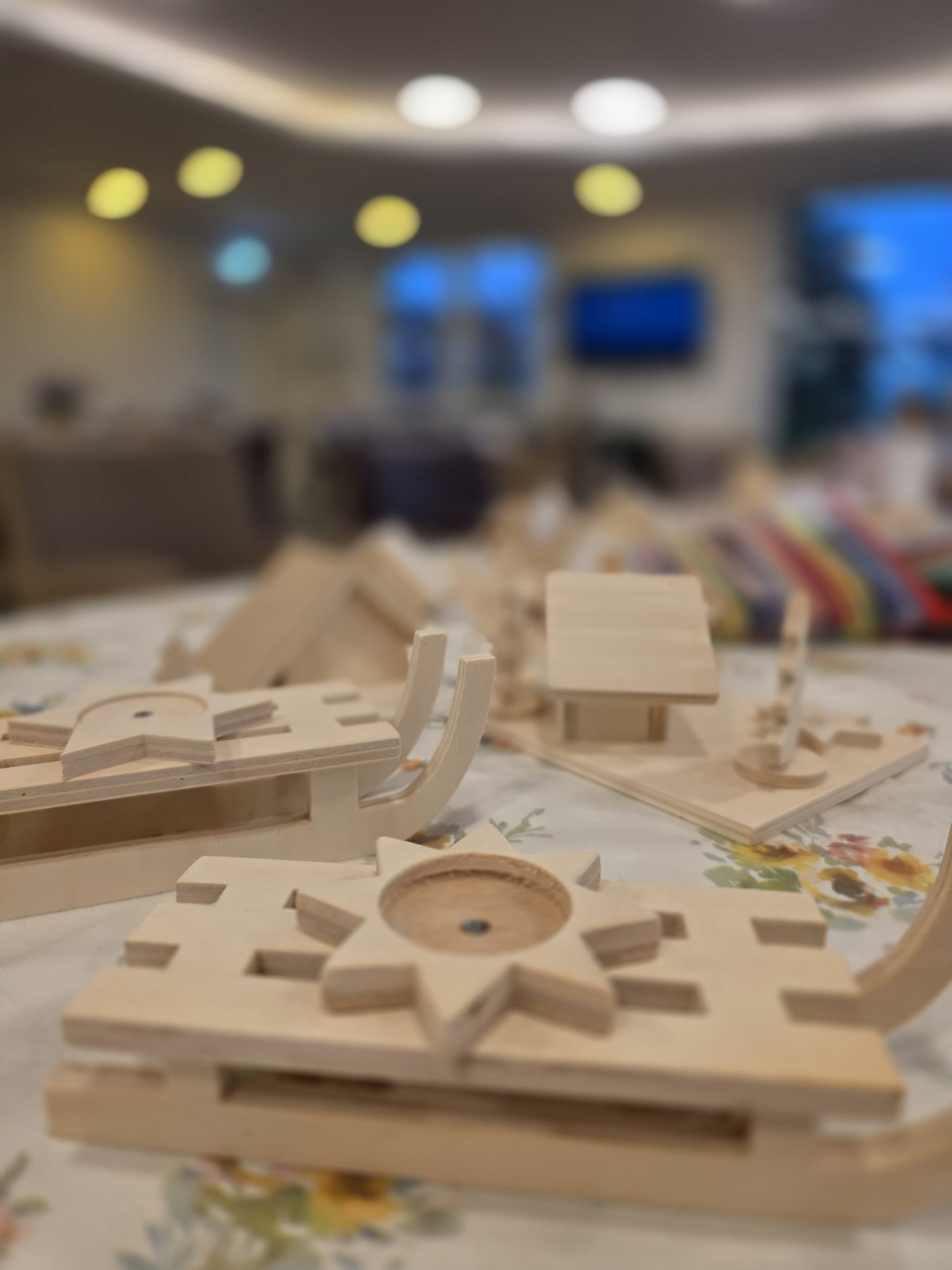 Gemeinsam mit den BewohnerInnen wurden kleine Holzdekorationen für die Weihnachtszeit bemalt – darunter Häuschen, Schlitten, Tannenbäume und viele süße Rentiere.