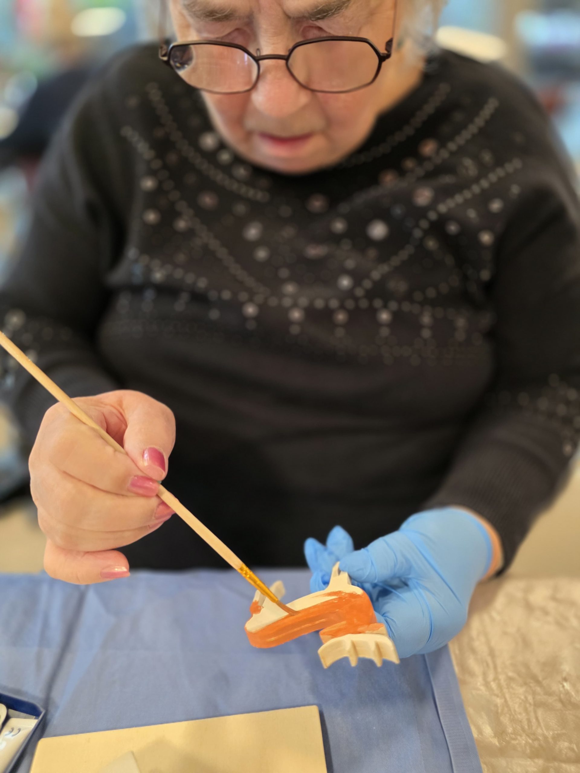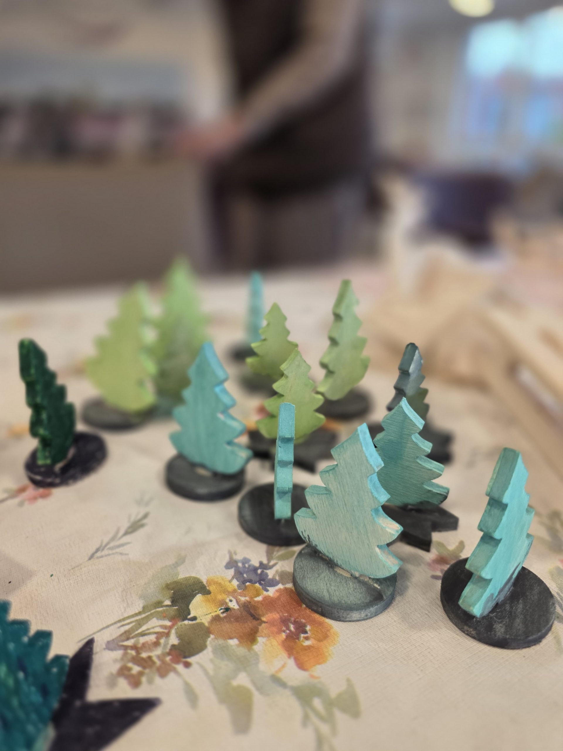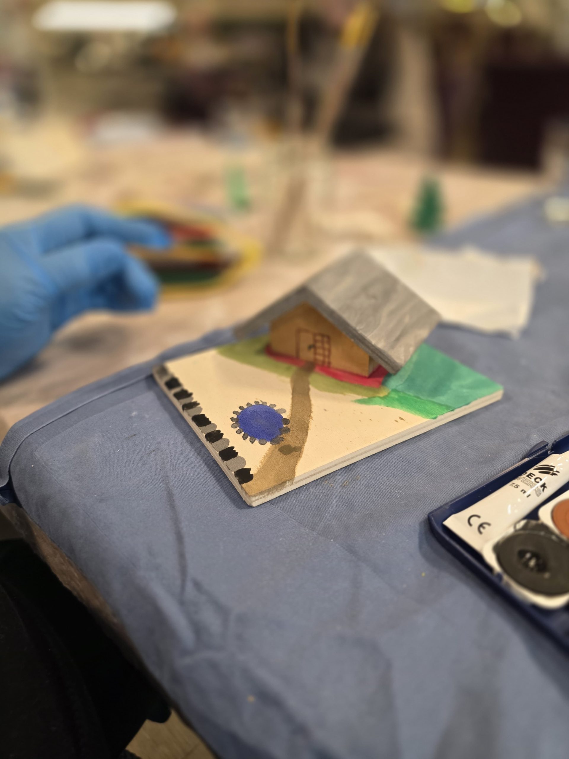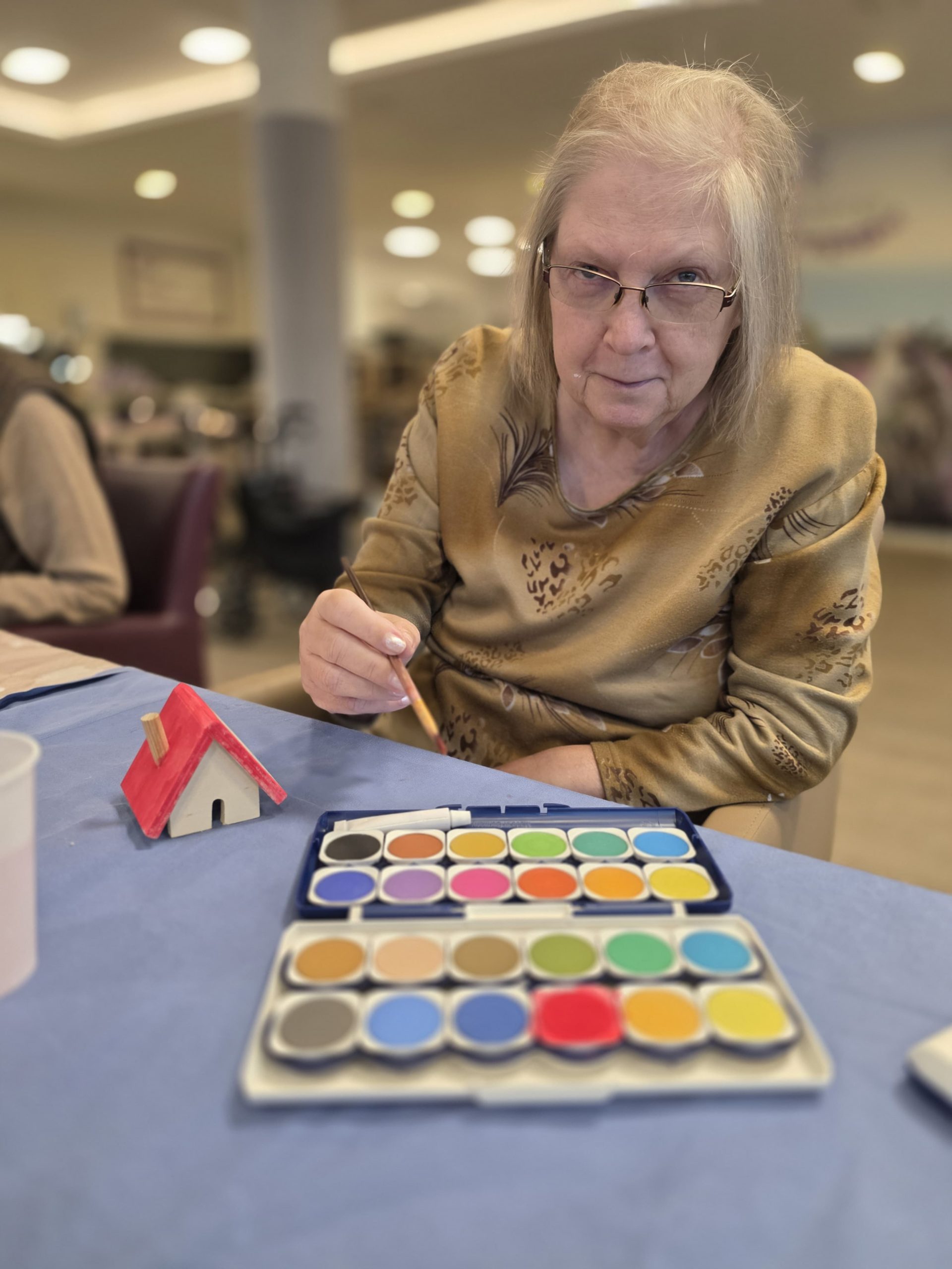 Gemeinsam mit den BewohnerInnen wurden kleine Holzdekorationen für die Weihnachtszeit bemalt – darunter Häuschen, Schlitten, Tannenbäume und viele süße Rentiere.