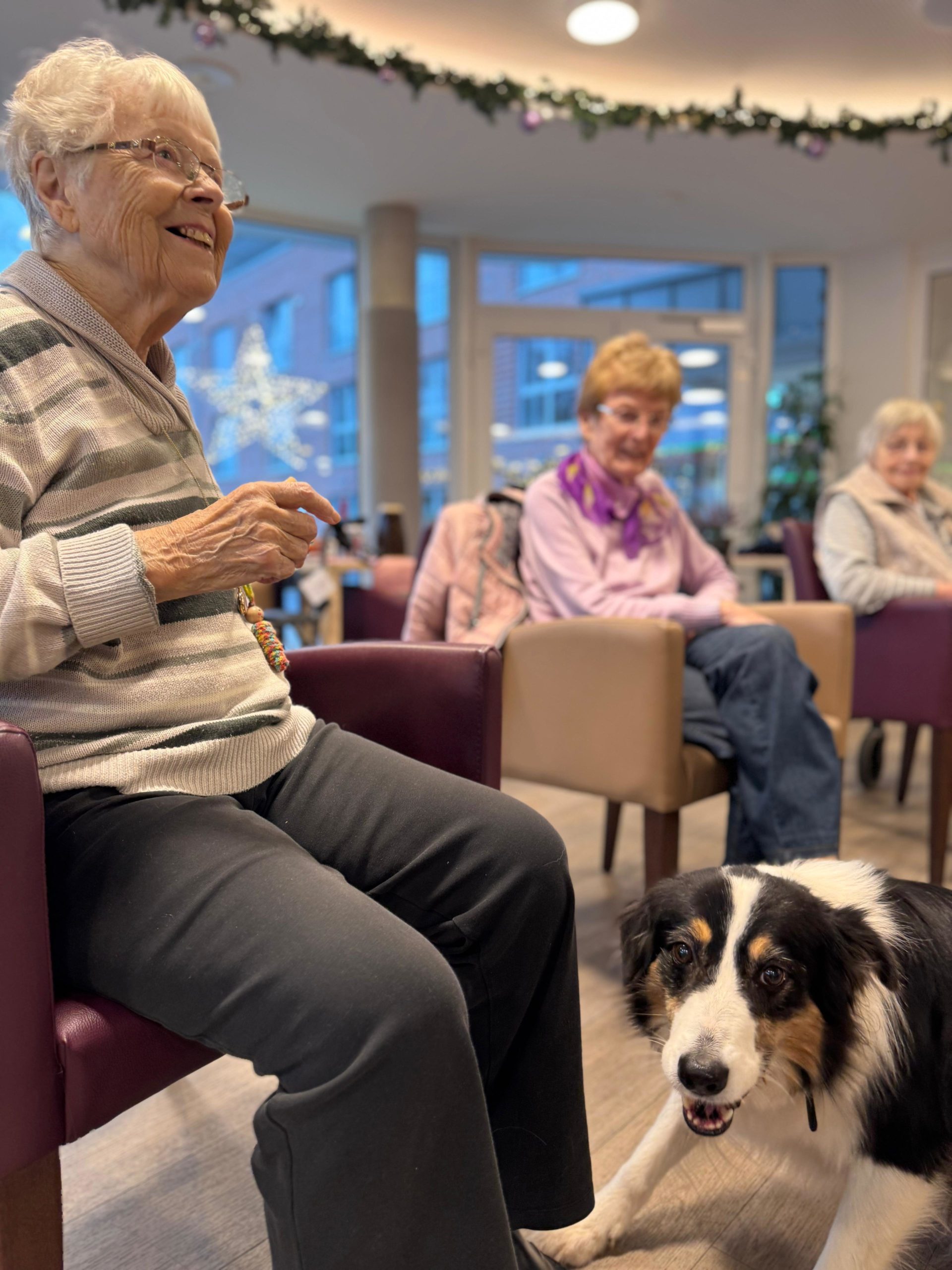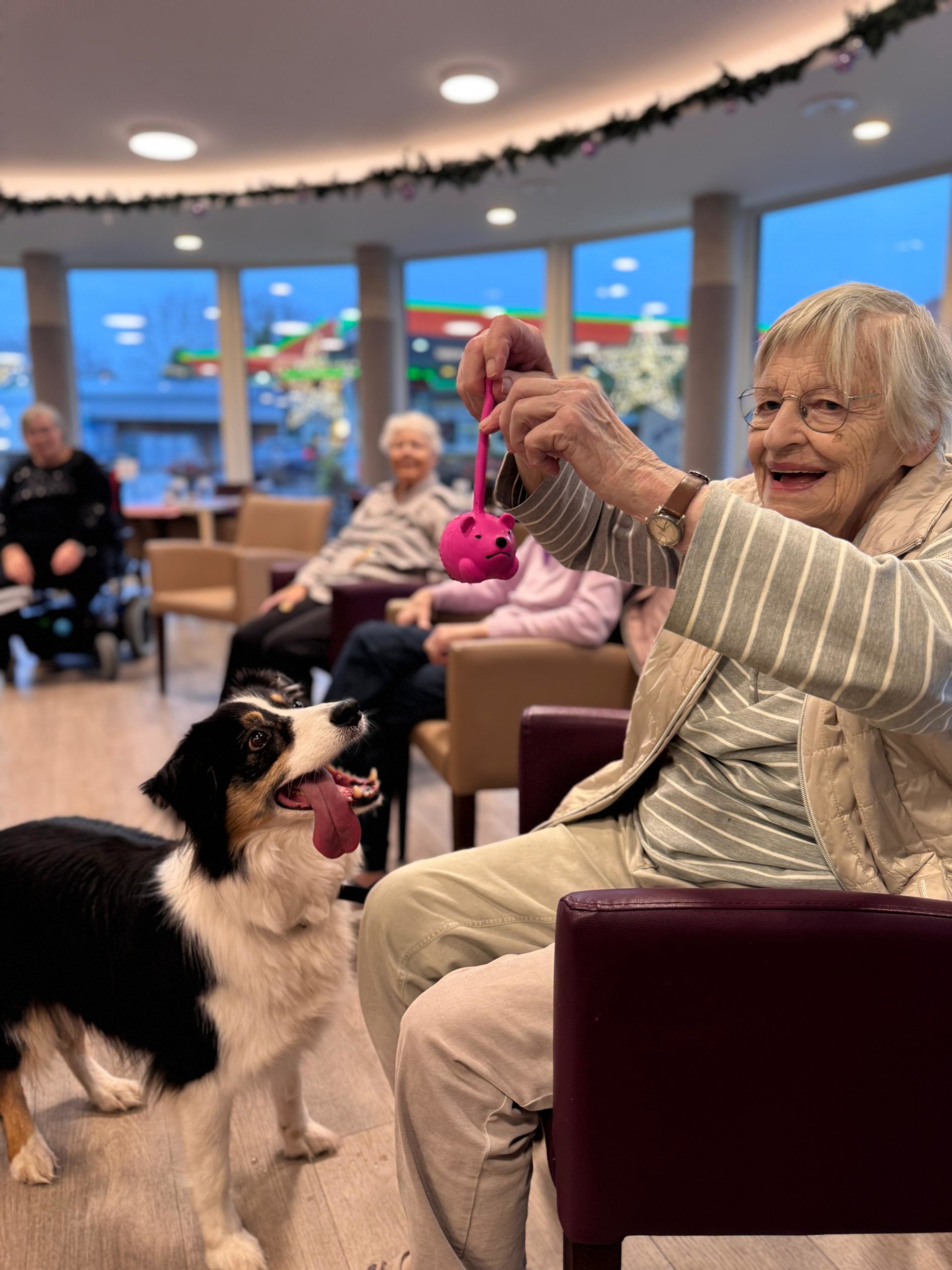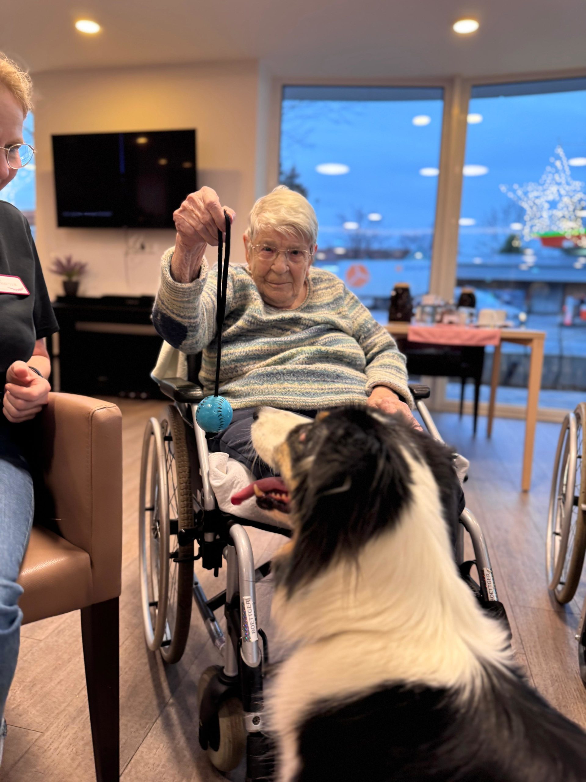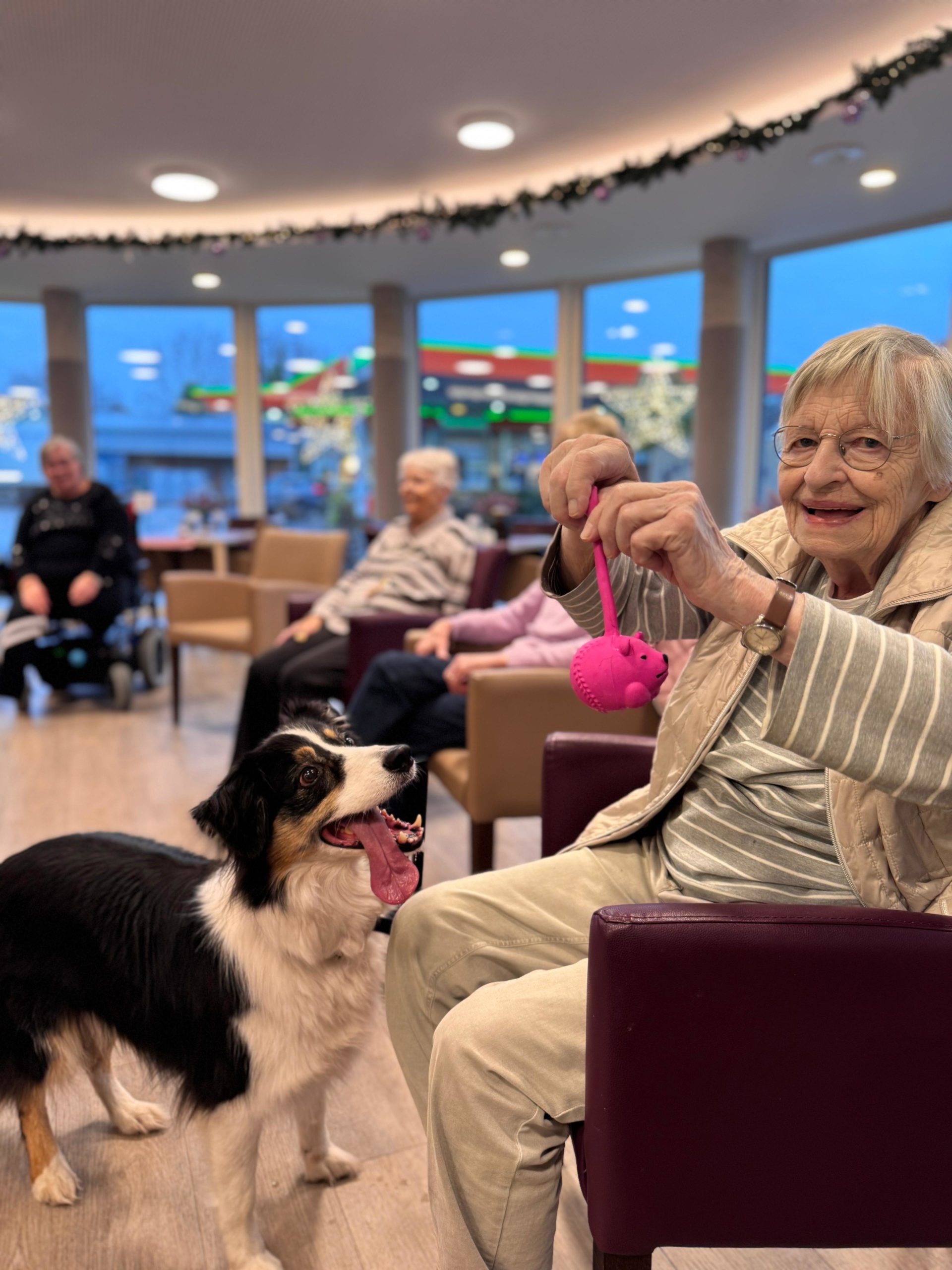 Ob in der gemeinsamen Runde oder direkt auf den Zimmern – überall dort, wo die drei auftauchen, füllen sich die Räume mit Lachen, Leichtigkeit und ganz viel Wärme. Viele unserer BewohnerInnen blühen regelrecht auf, wenn sie die flauschigen Besucher begrüßen dürfen, und genießen die Nähe, Streicheleinheiten und kleinen Spielmomente. ✨🐕🦺