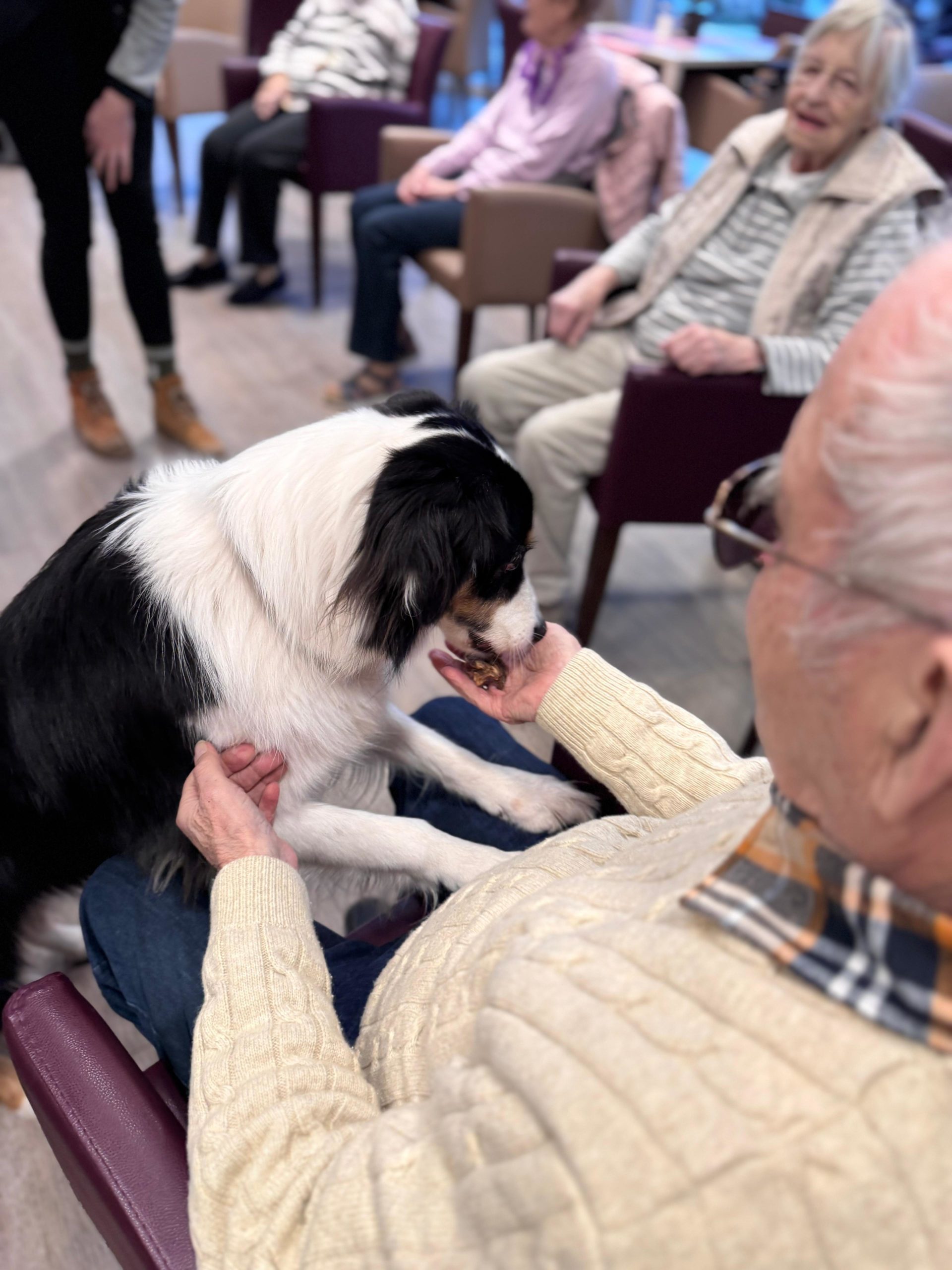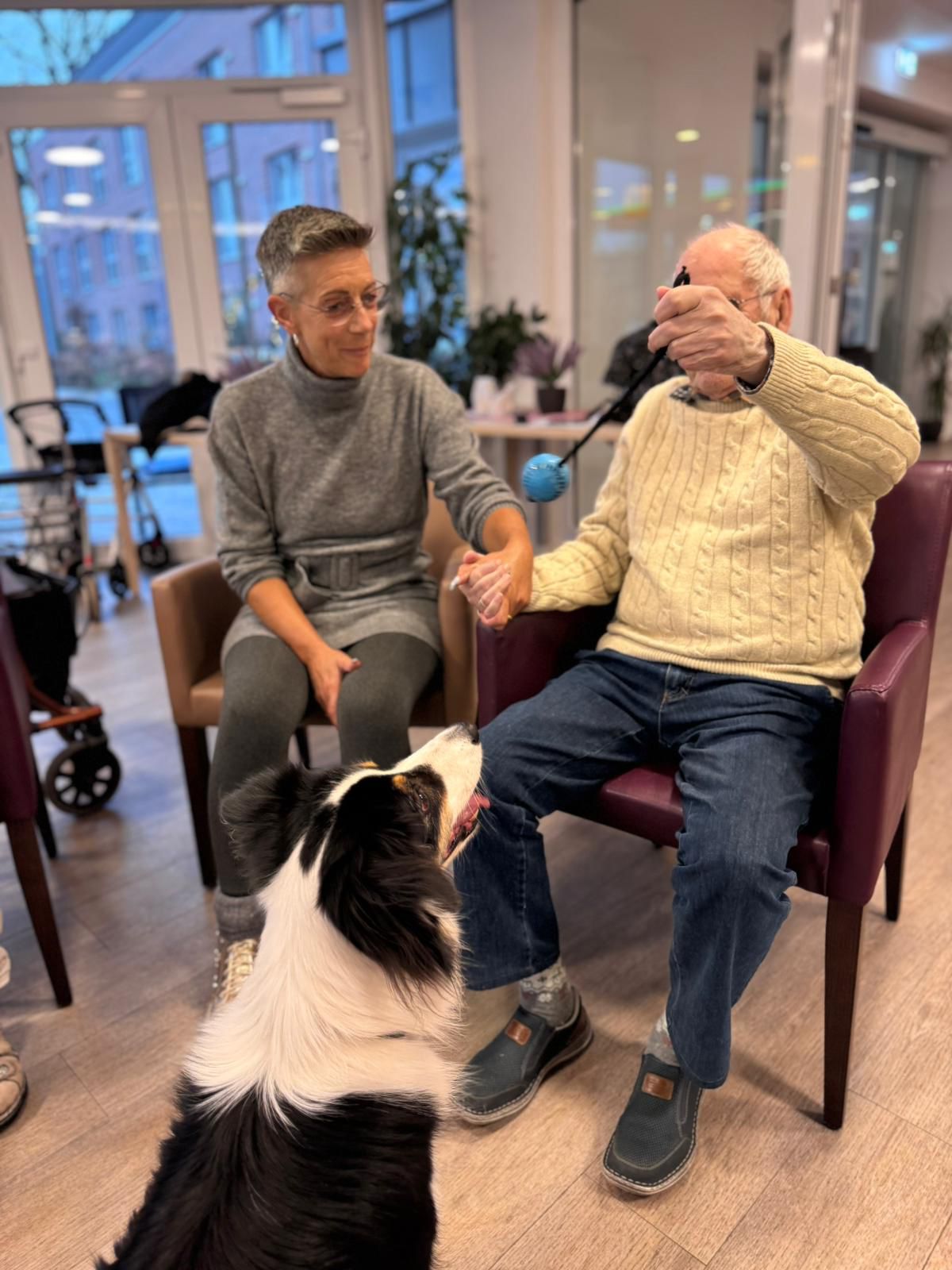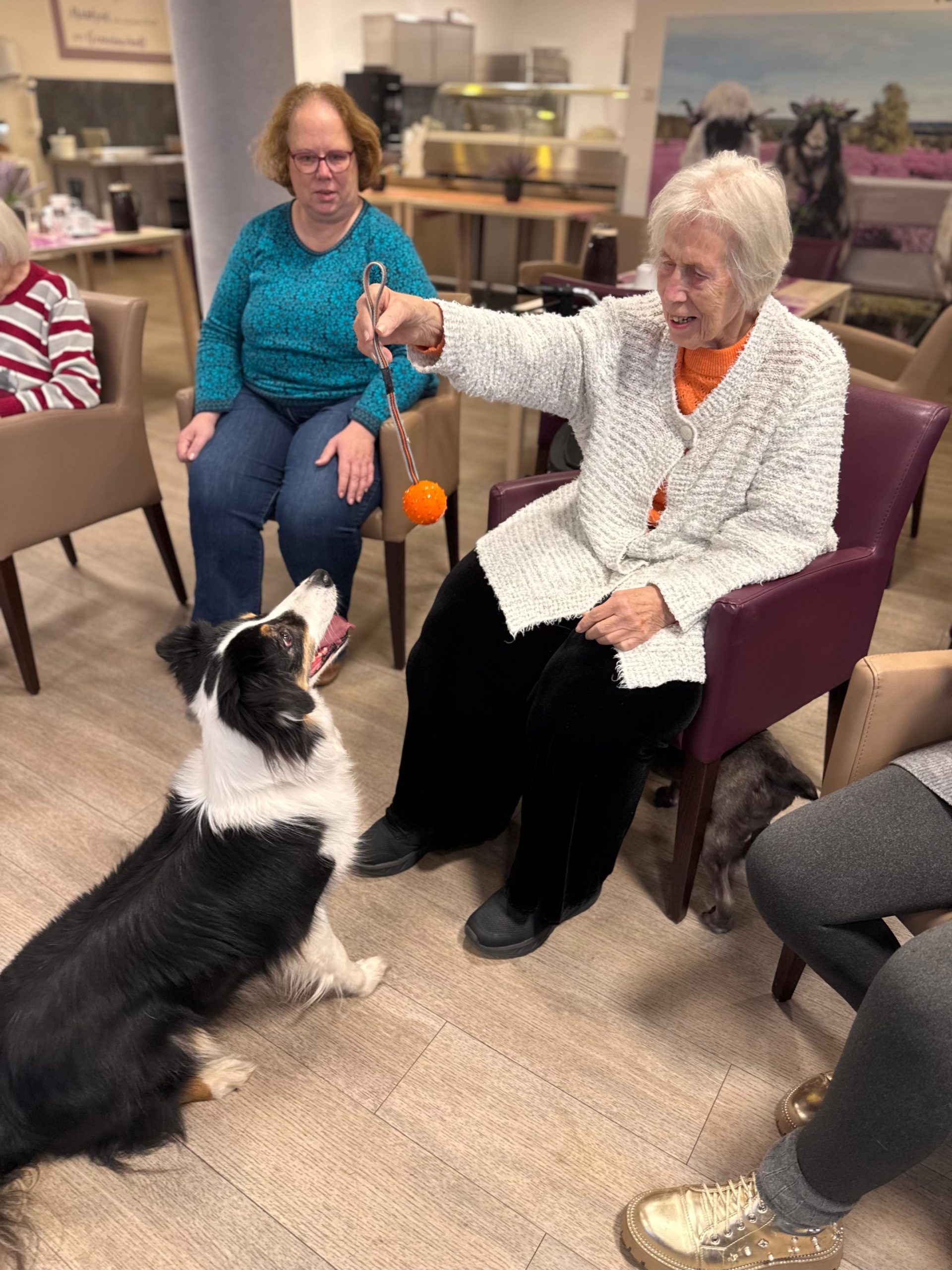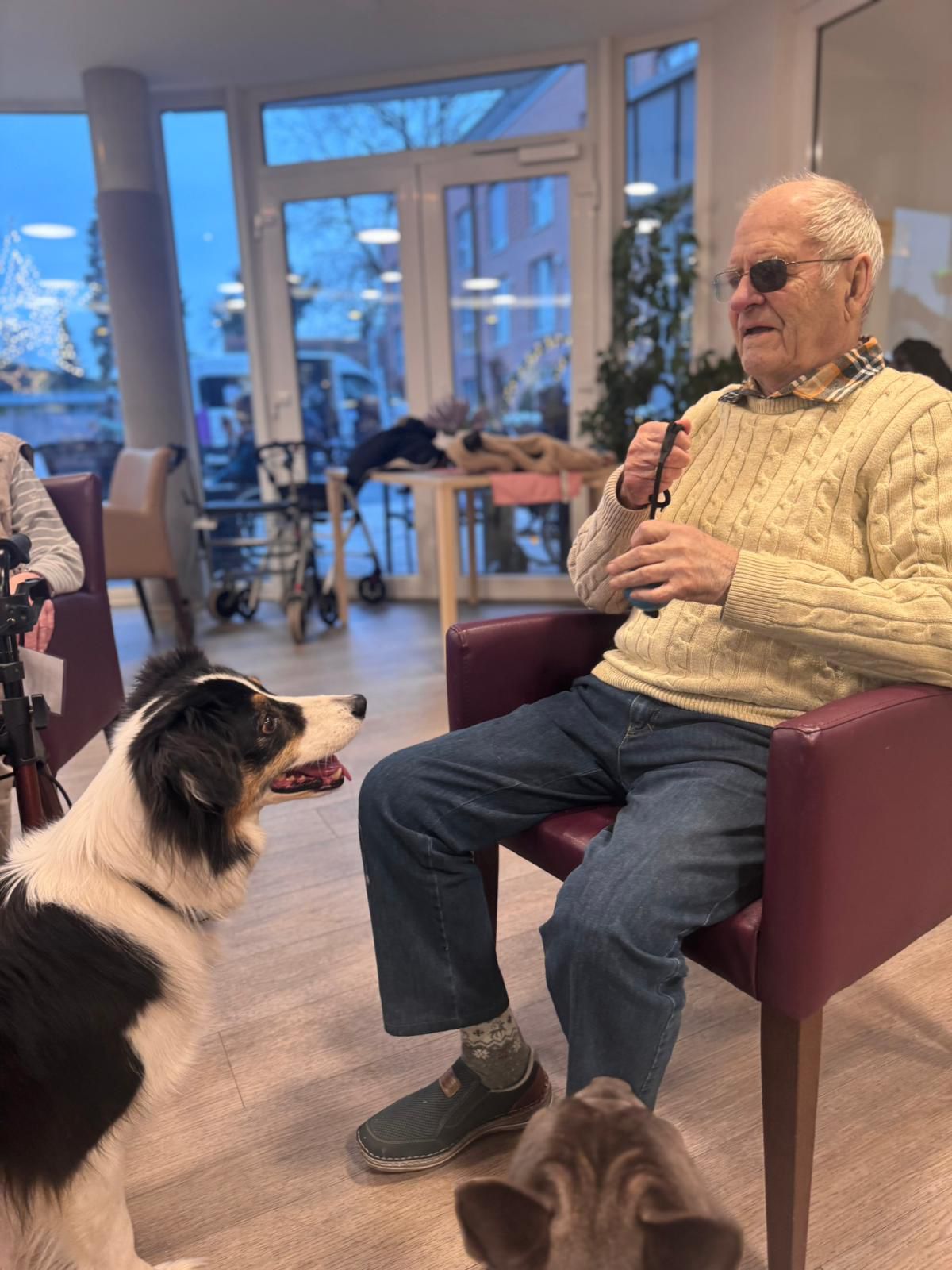 Ob in der gemeinsamen Runde oder direkt auf den Zimmern – überall dort, wo die drei auftauchen, füllen sich die Räume mit Lachen, Leichtigkeit und ganz viel Wärme. Viele unserer BewohnerInnen blühen regelrecht auf, wenn sie die flauschigen Besucher begrüßen dürfen, und genießen die Nähe, Streicheleinheiten und kleinen Spielmomente. ✨🐕🦺