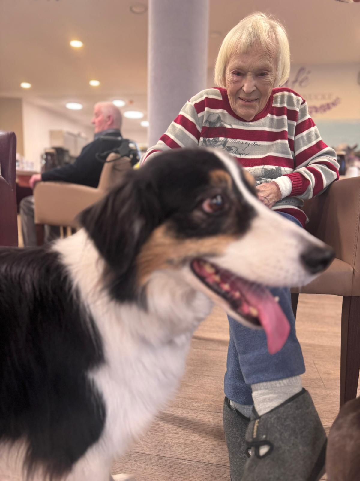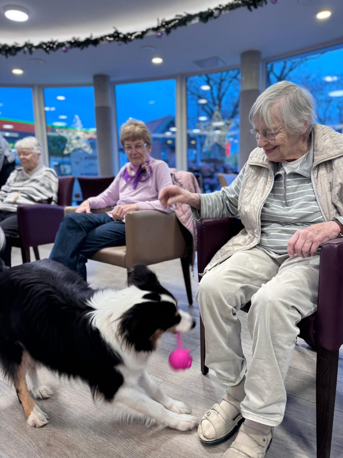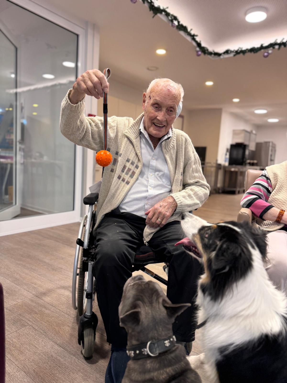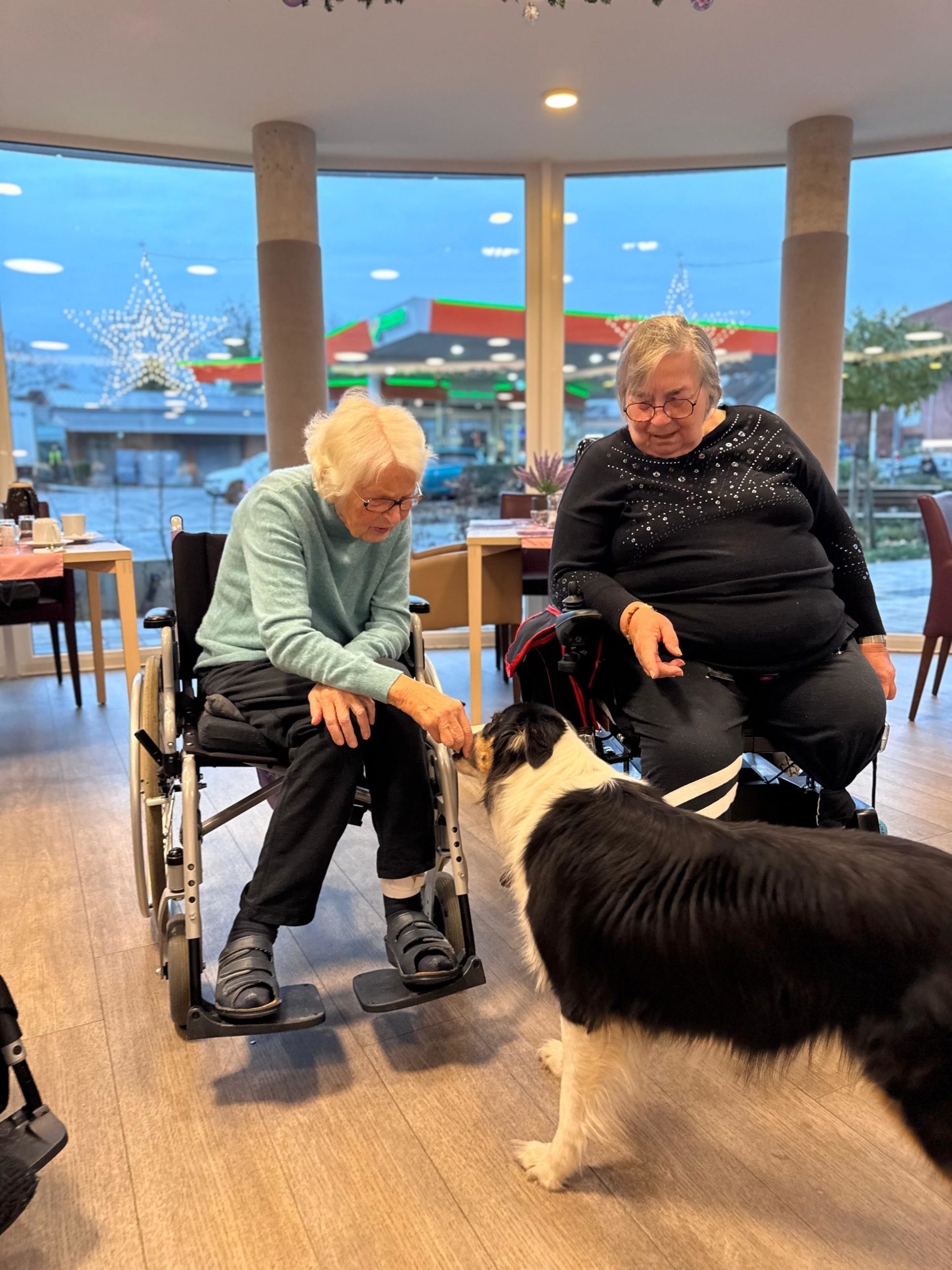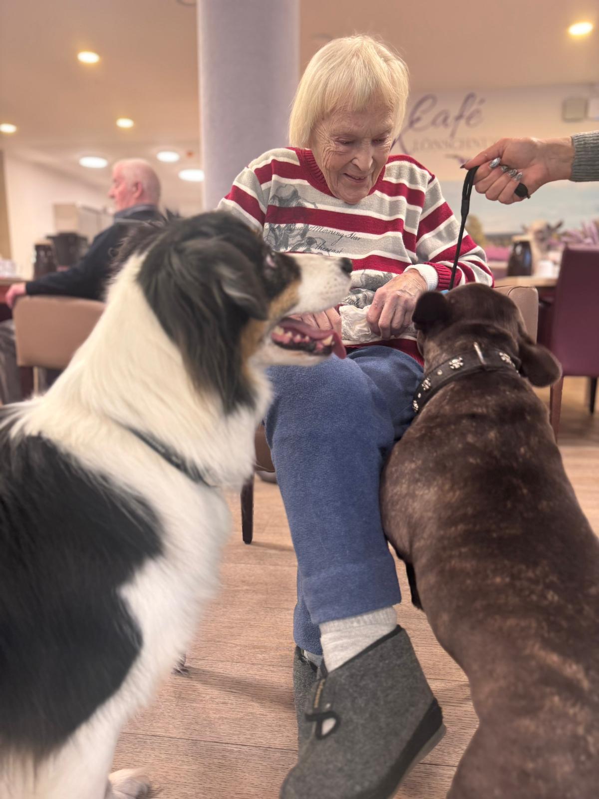 Gestern war wieder ein ganz besonderer Tag bei uns: Silke hat unsere BewohnerInnen gemeinsam mit ihren treuen Begleitern Arthus und Ernie besucht. 🐶💛