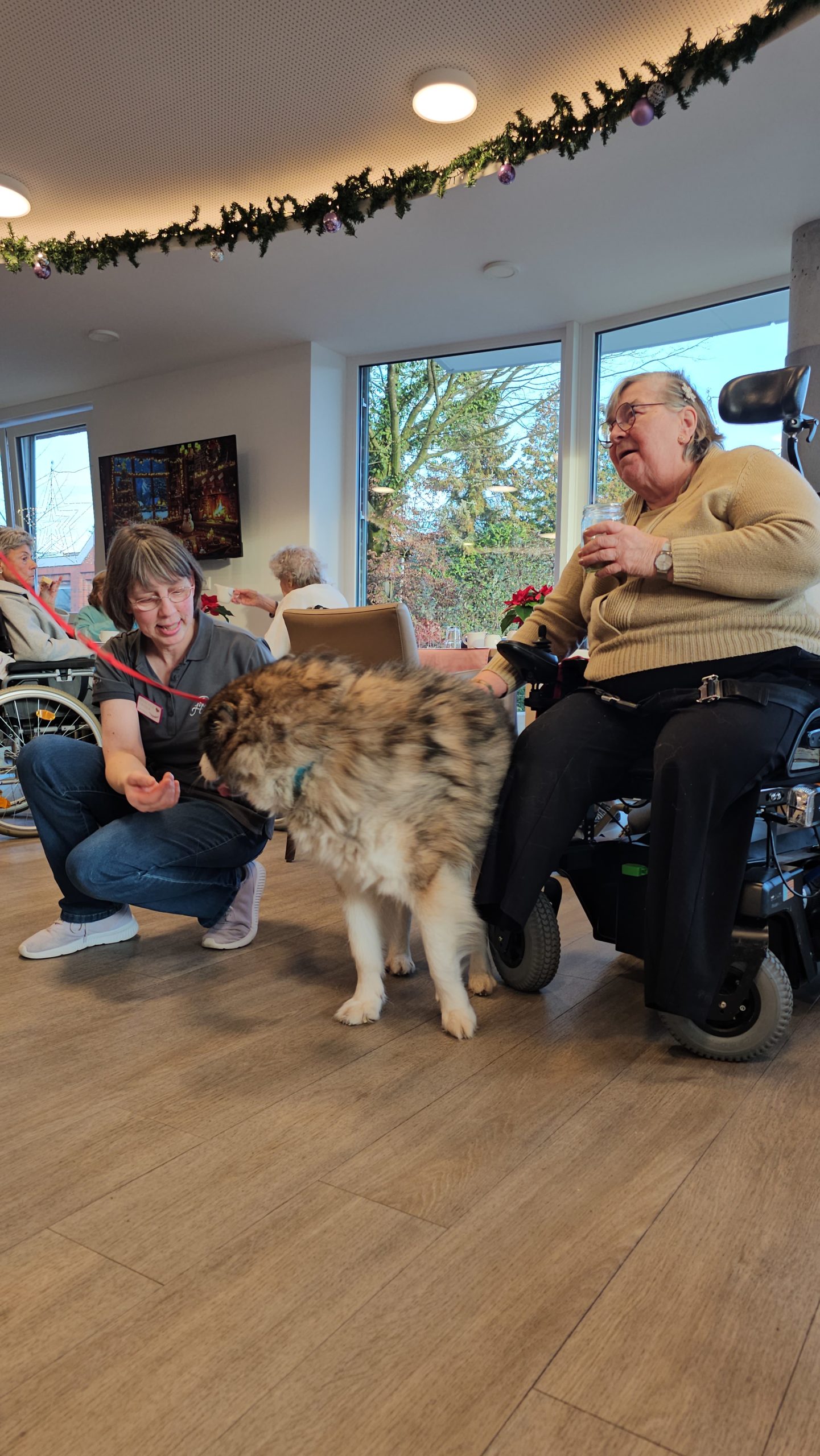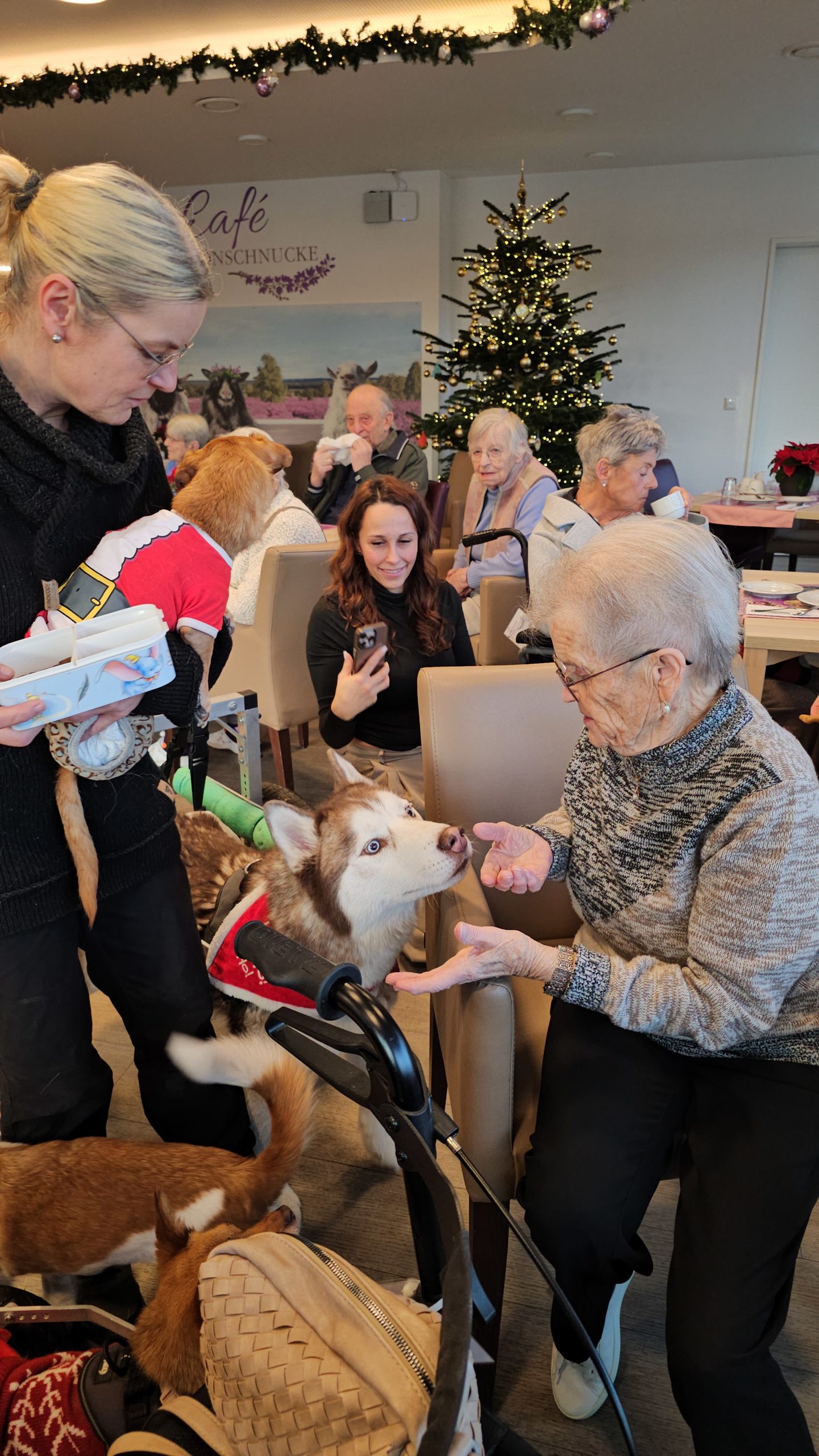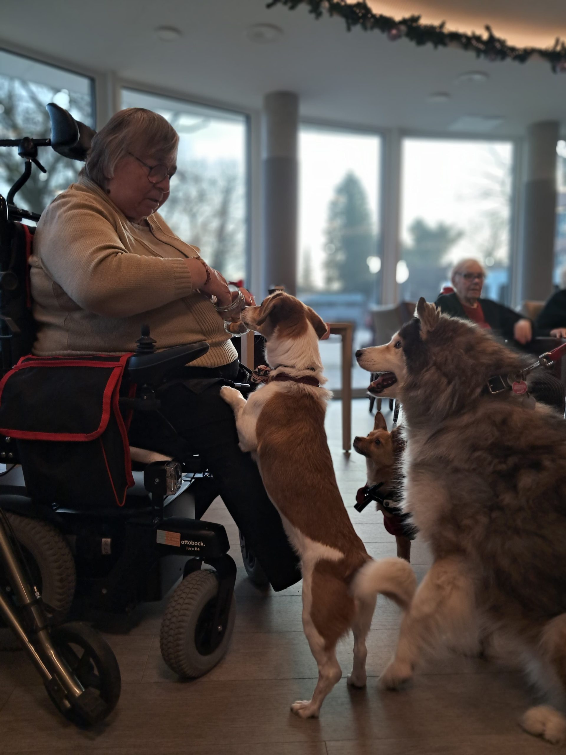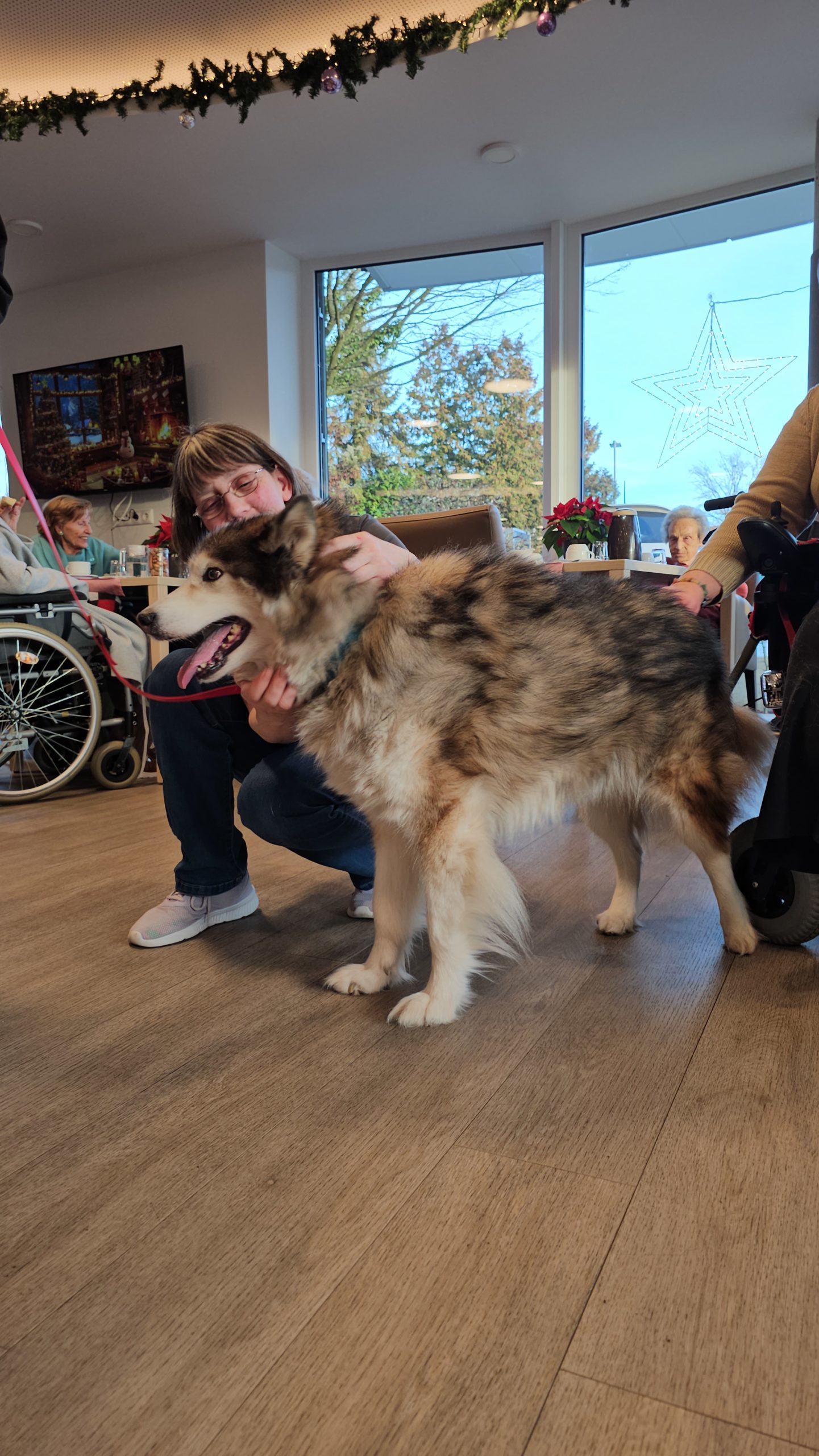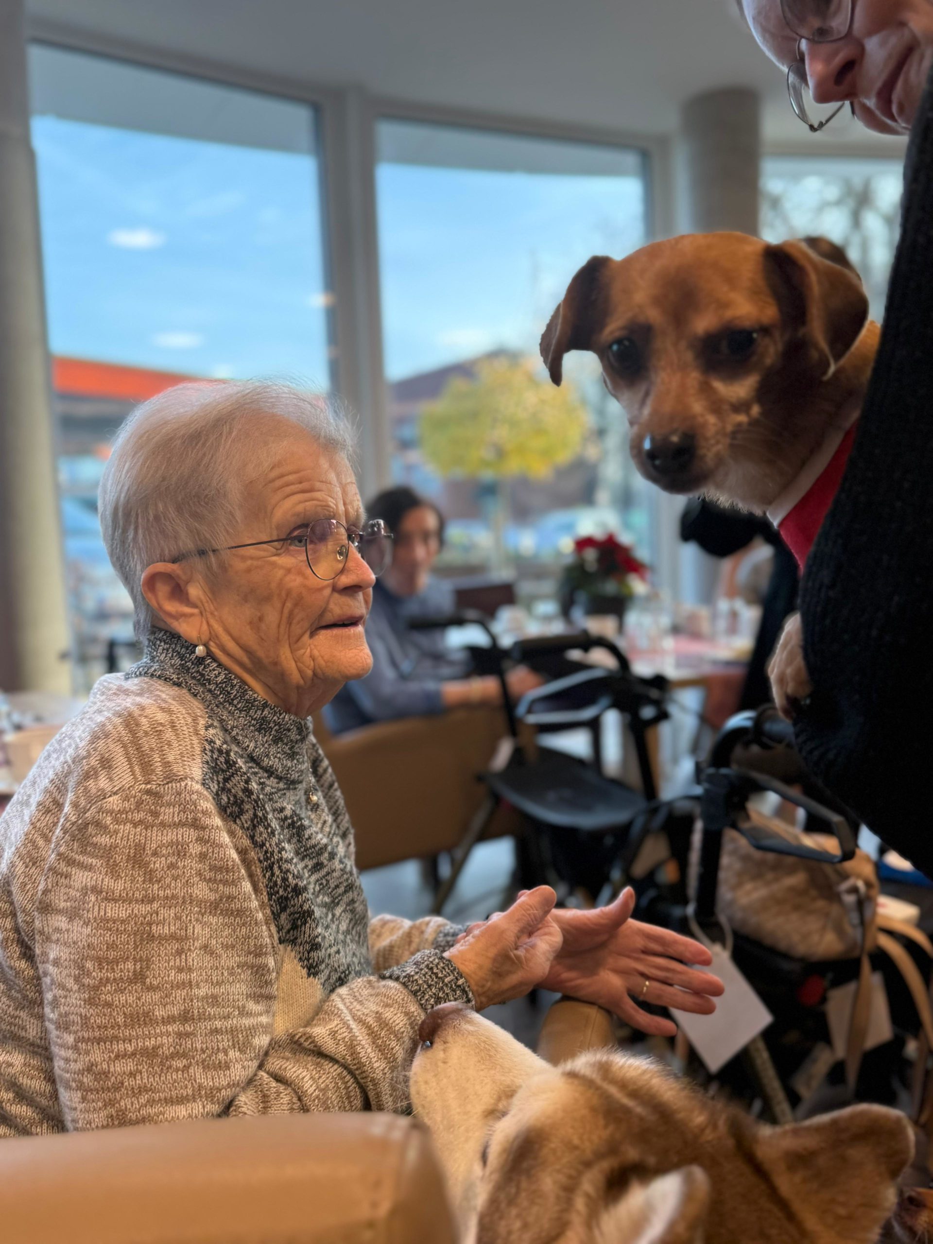 Der De Hun’nenhof war mit gleich fünf ihrer wunderbaren Hunde bei uns. Die Mitarbeitenden stellten sich und ihre Arbeit vor – und unsere Bewohnerinnen und Bewohner durften die Hunde ganz in Ruhe kennenlernen, streicheln und Zeit mit ihnen verbringen. Die Freude war riesig! 💛