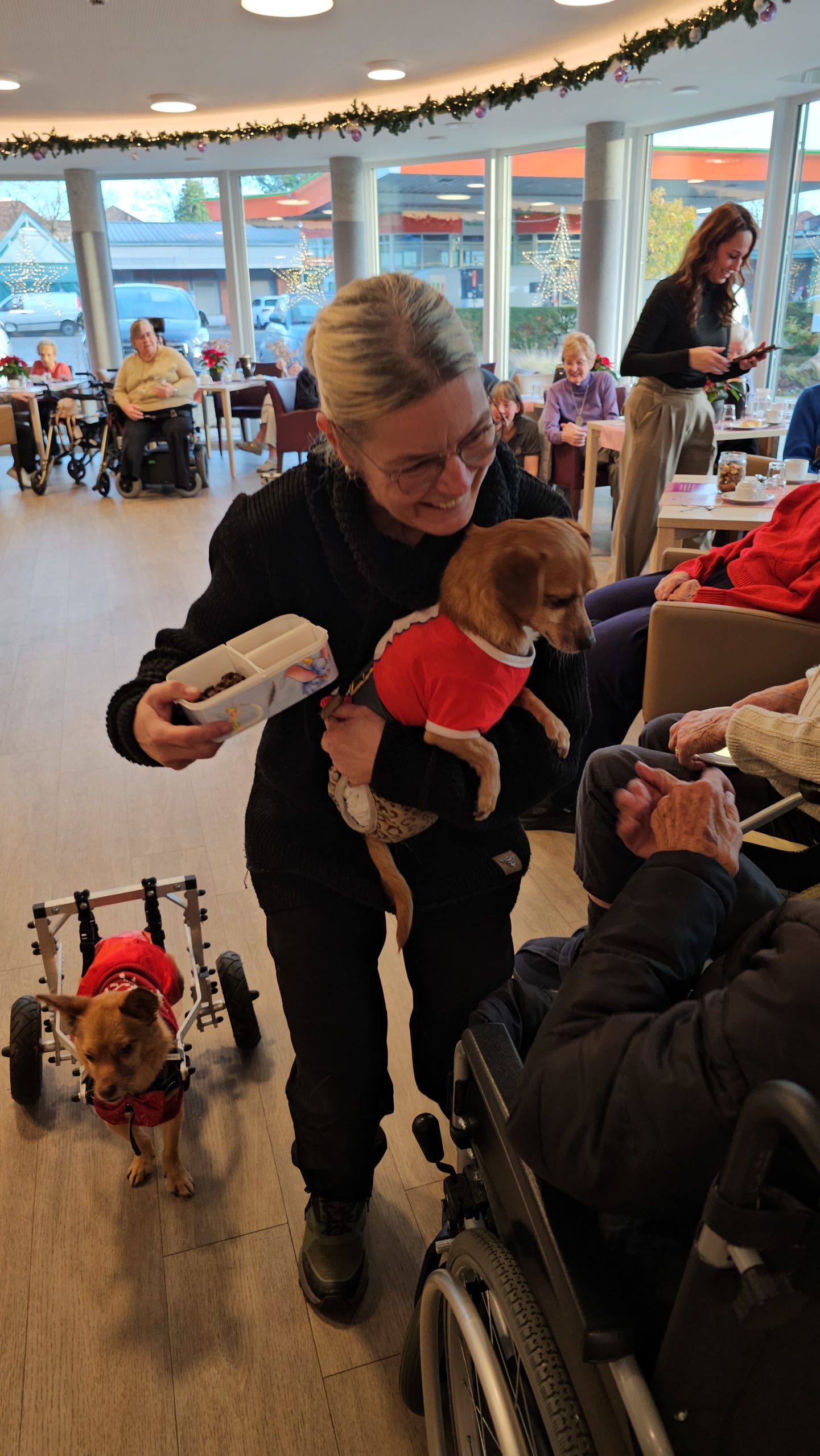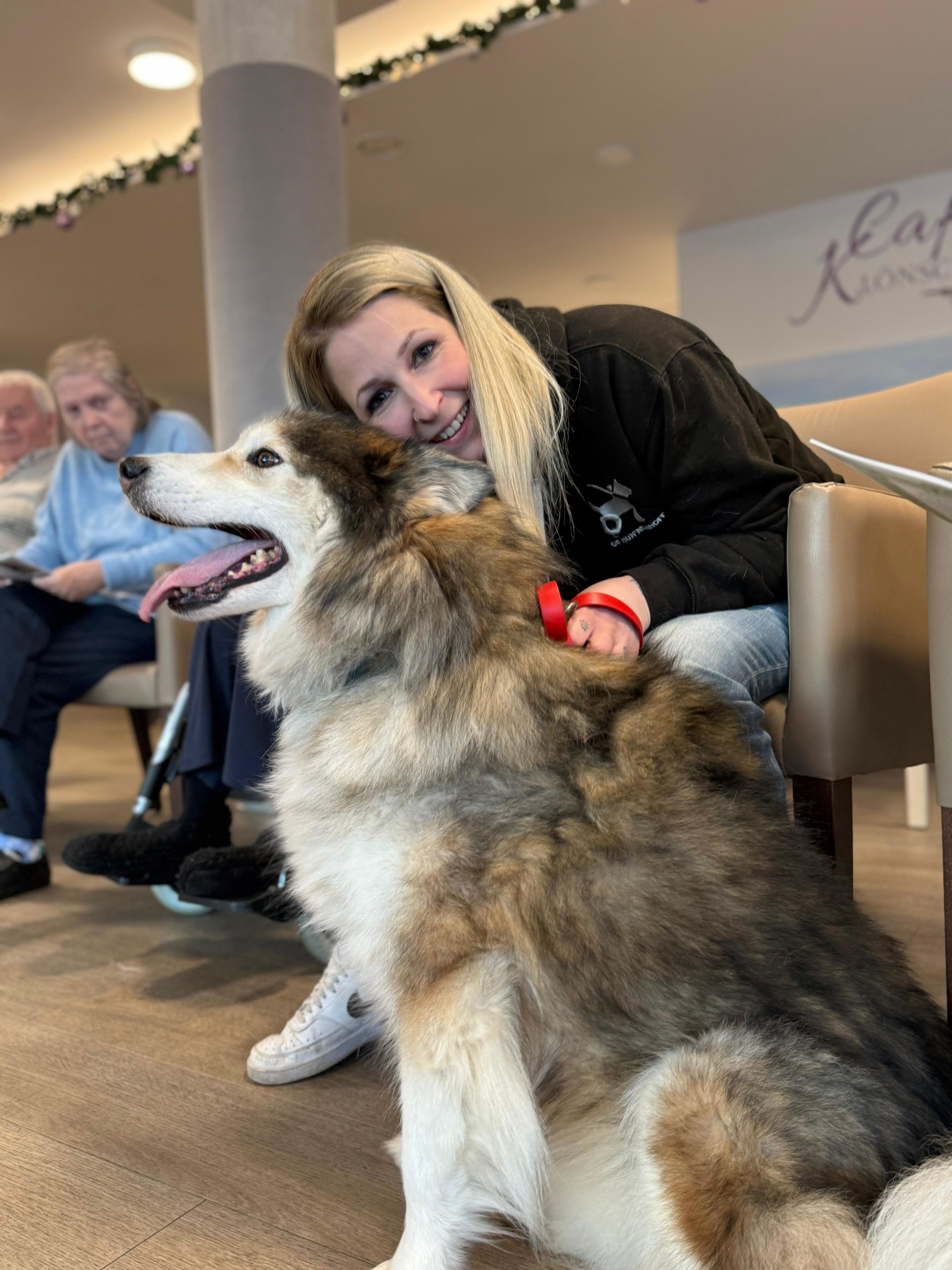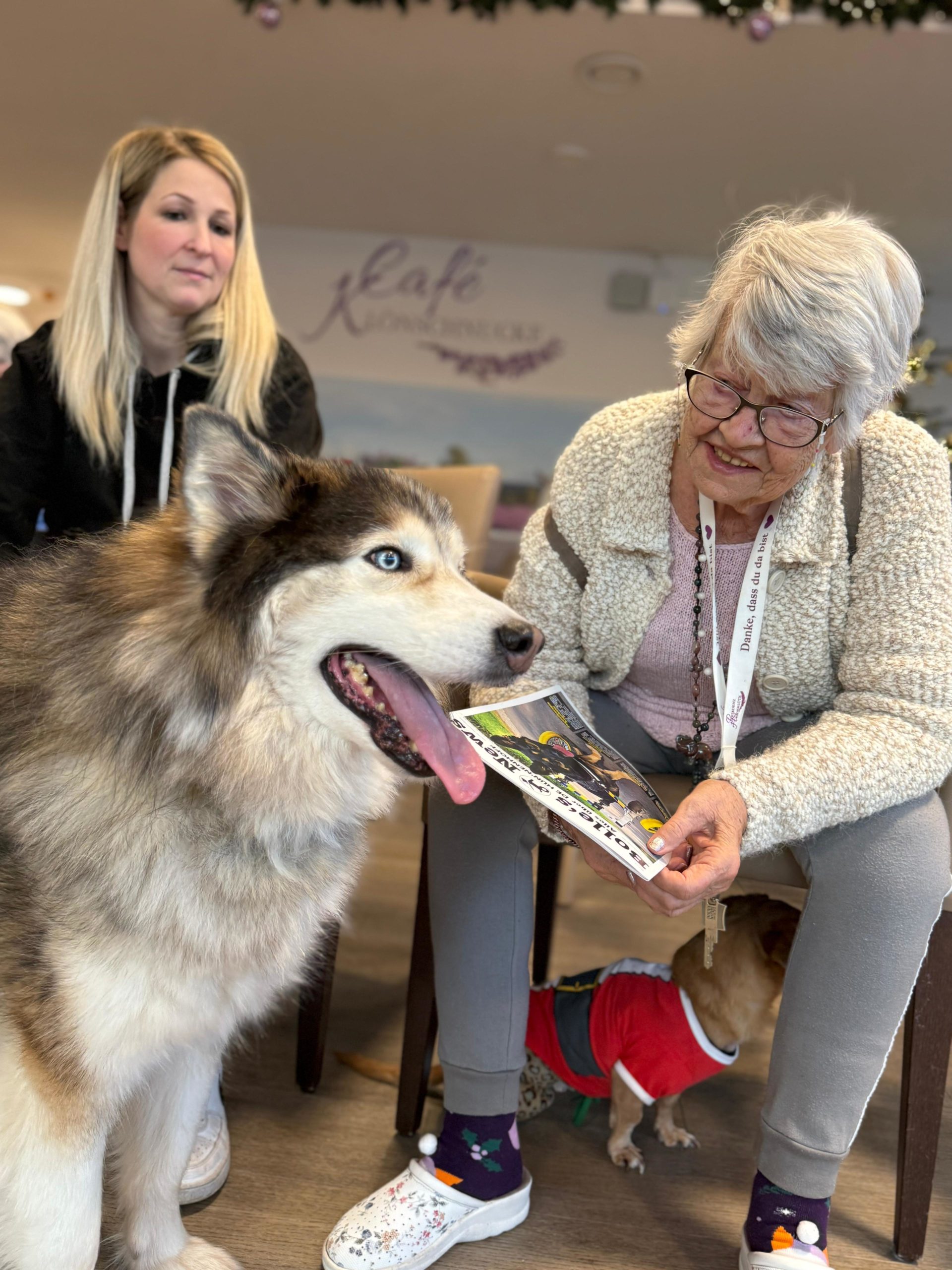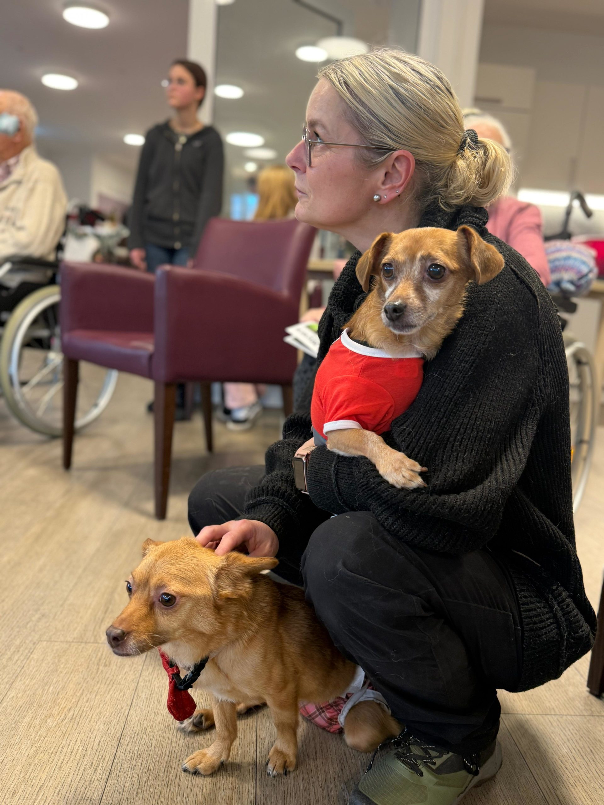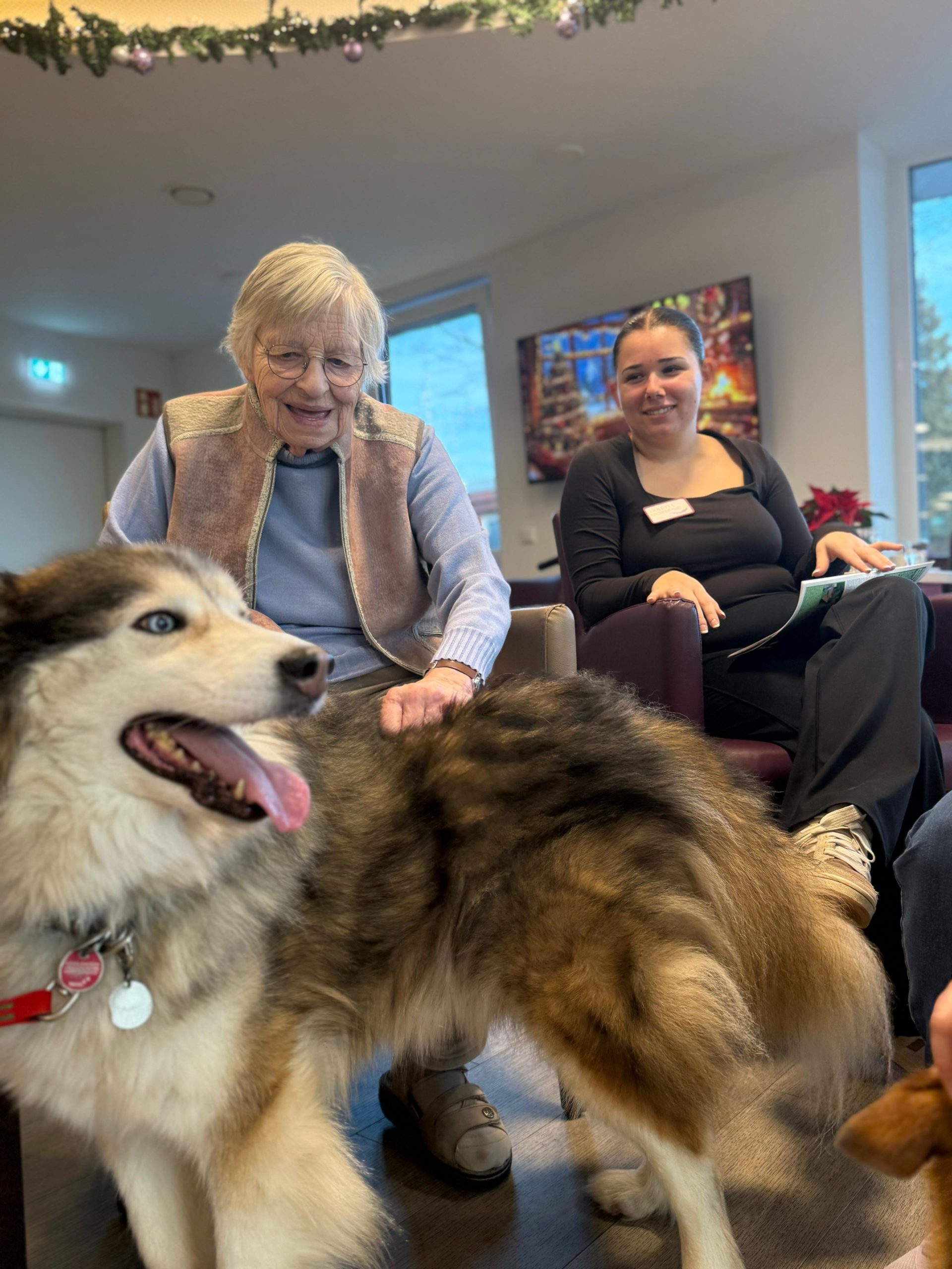 Der De Hun’nenhof war mit gleich fünf ihrer wunderbaren Hunde bei uns. Die Mitarbeitenden stellten sich und ihre Arbeit vor – und unsere Bewohnerinnen und Bewohner durften die Hunde ganz in Ruhe kennenlernen, streicheln und Zeit mit ihnen verbringen. Die Freude war riesig! 💛