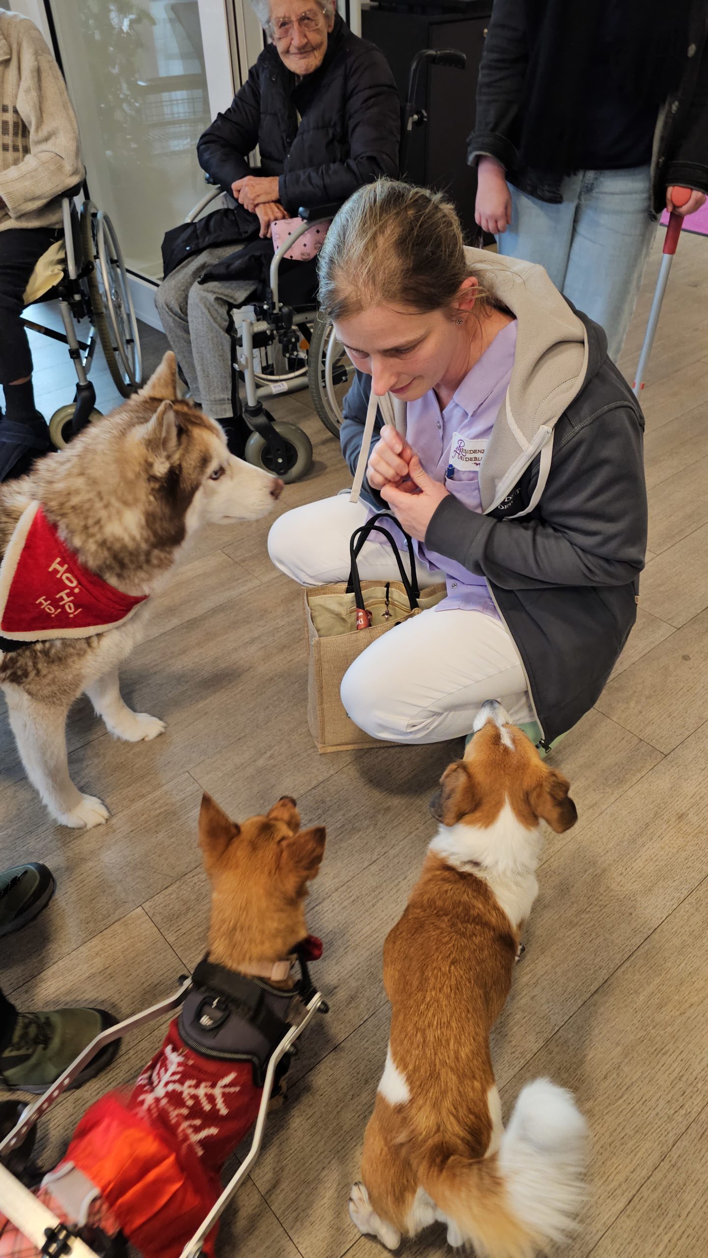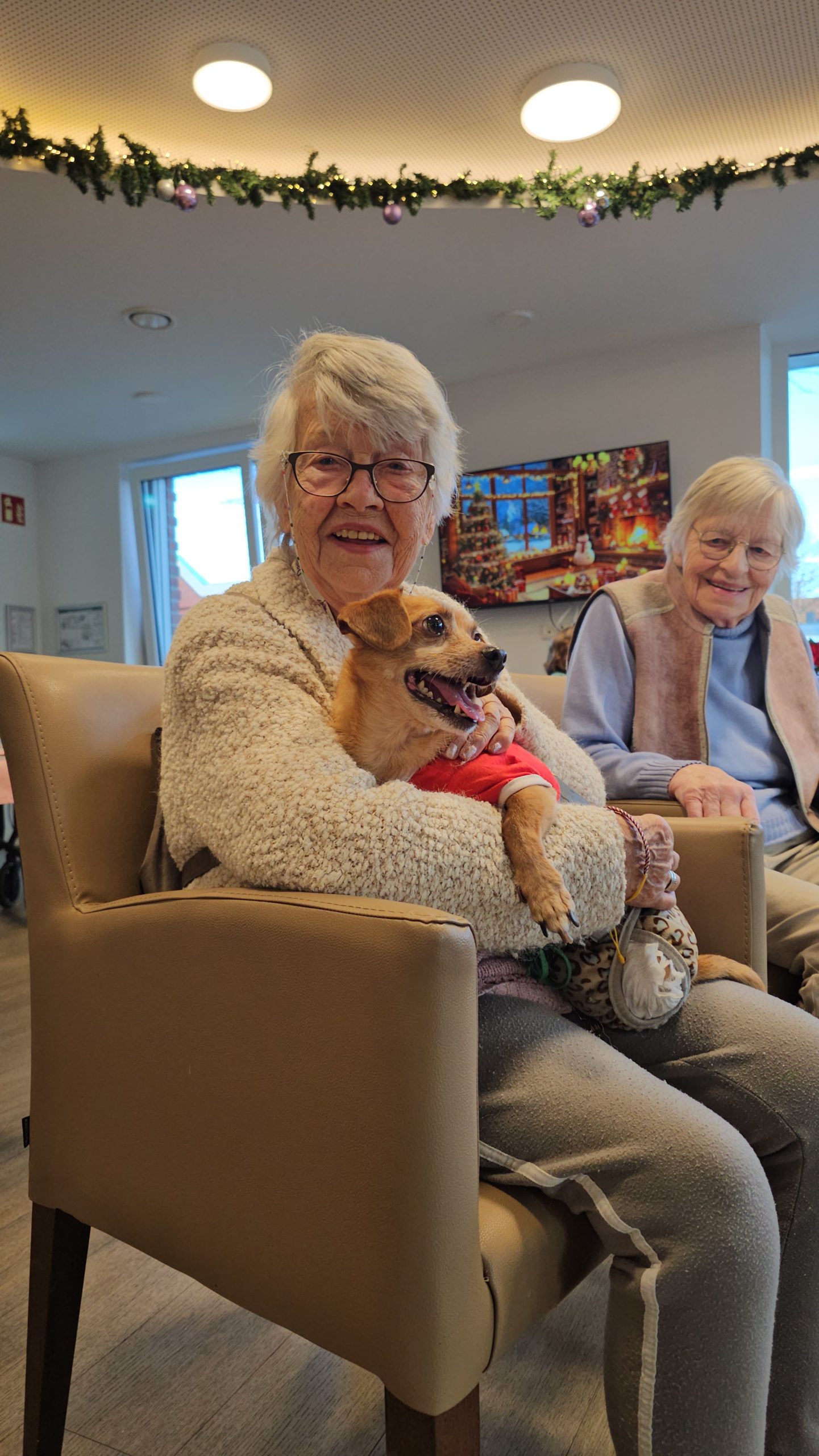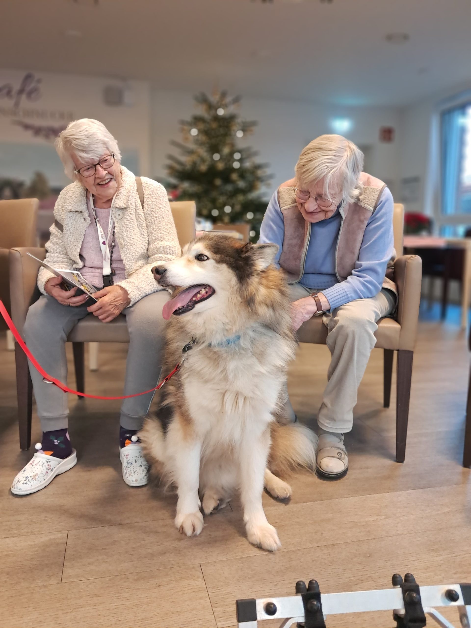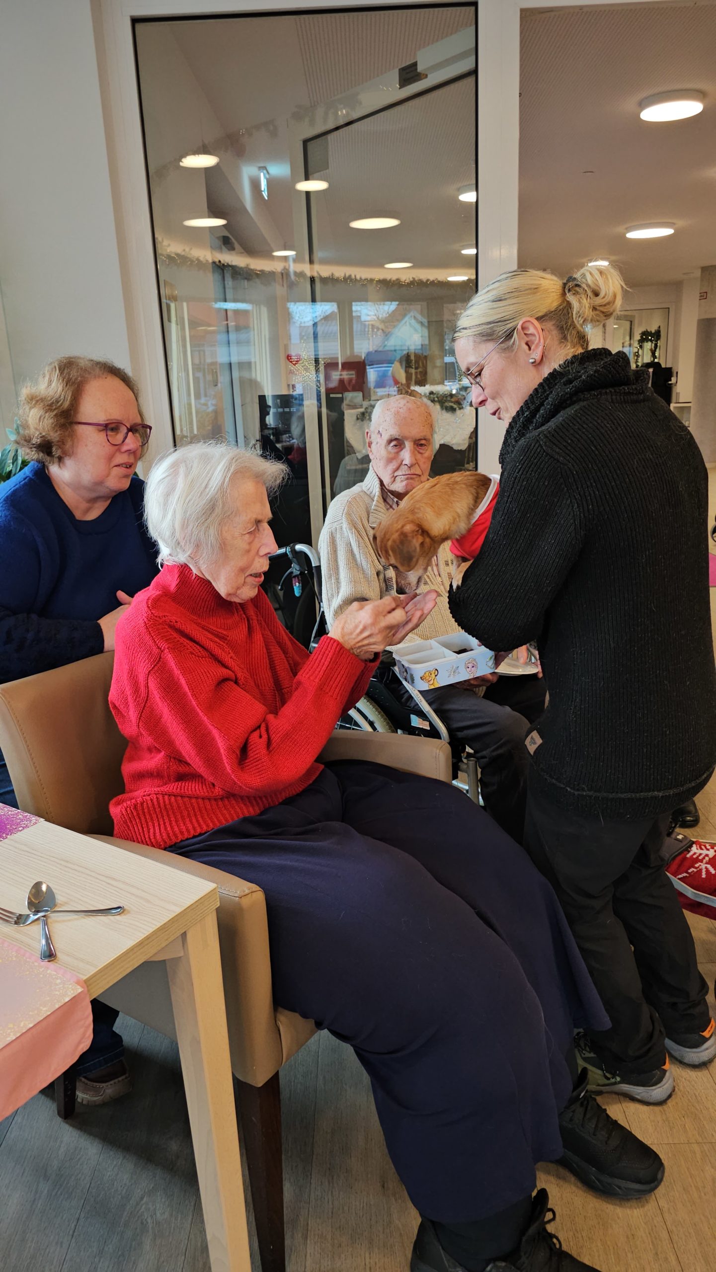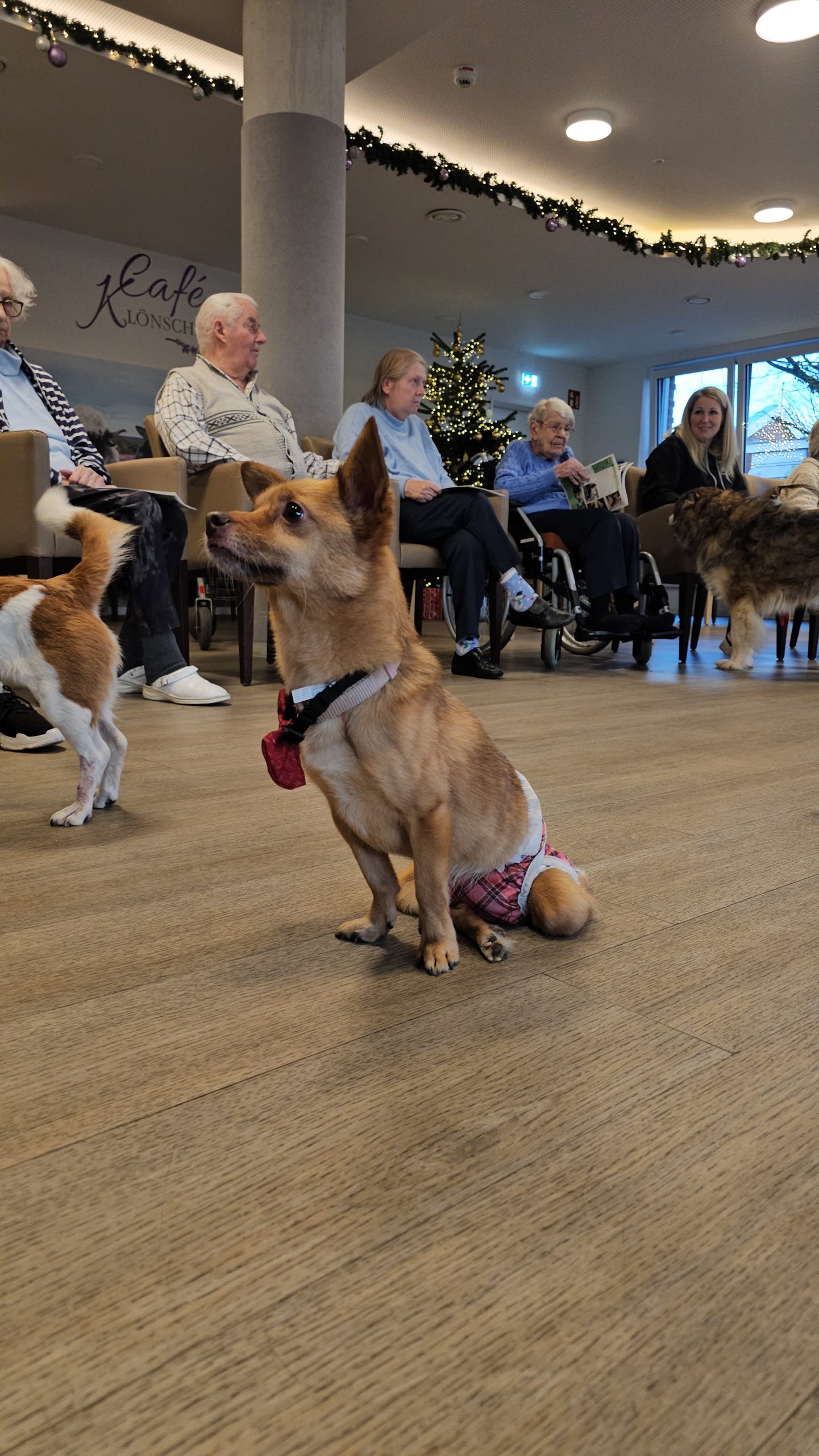 Der De Hun’nenhof war mit gleich fünf ihrer wunderbaren Hunde bei uns. Die Mitarbeitenden stellten sich und ihre Arbeit vor – und unsere Bewohnerinnen und Bewohner durften die Hunde ganz in Ruhe kennenlernen, streicheln und Zeit mit ihnen verbringen. Die Freude war riesig! 💛