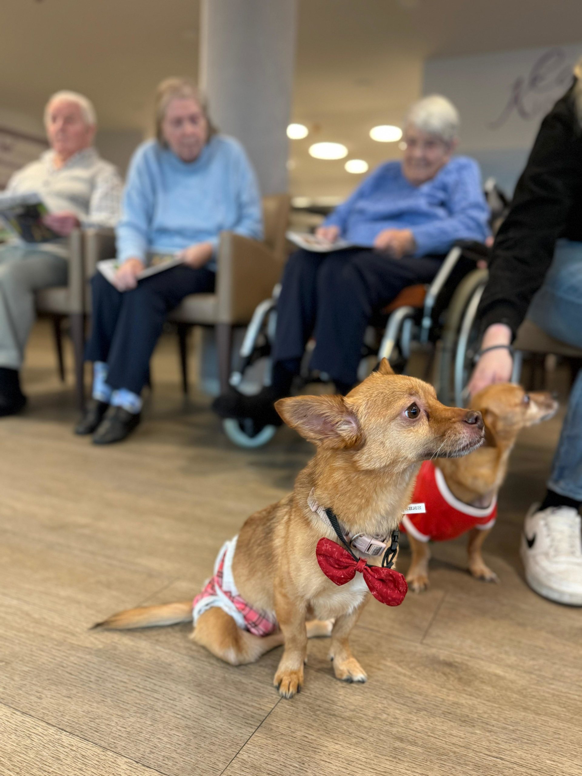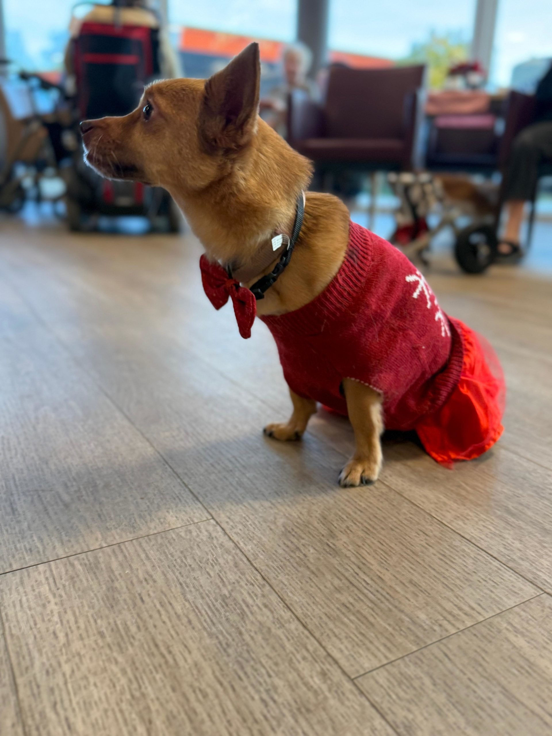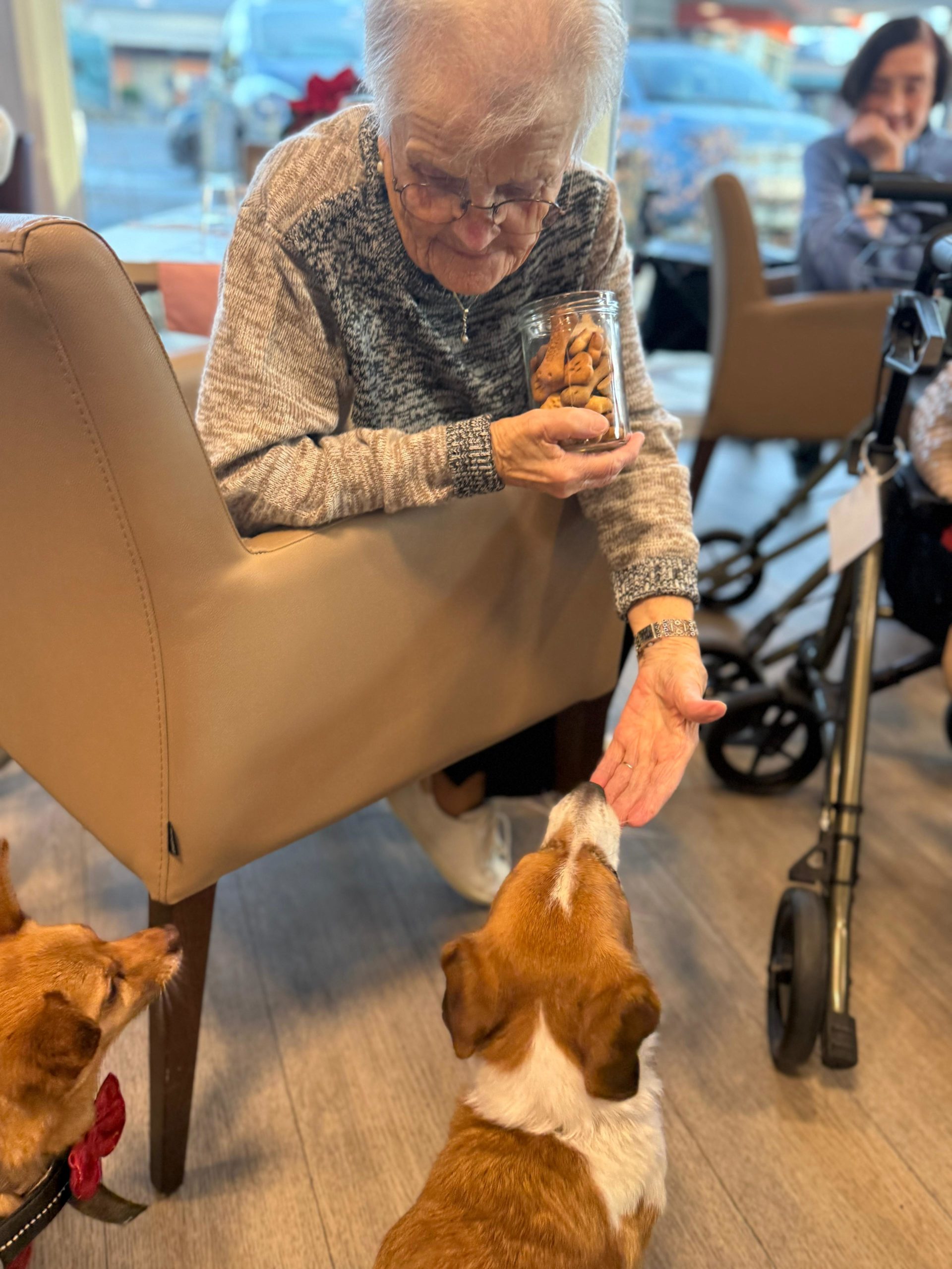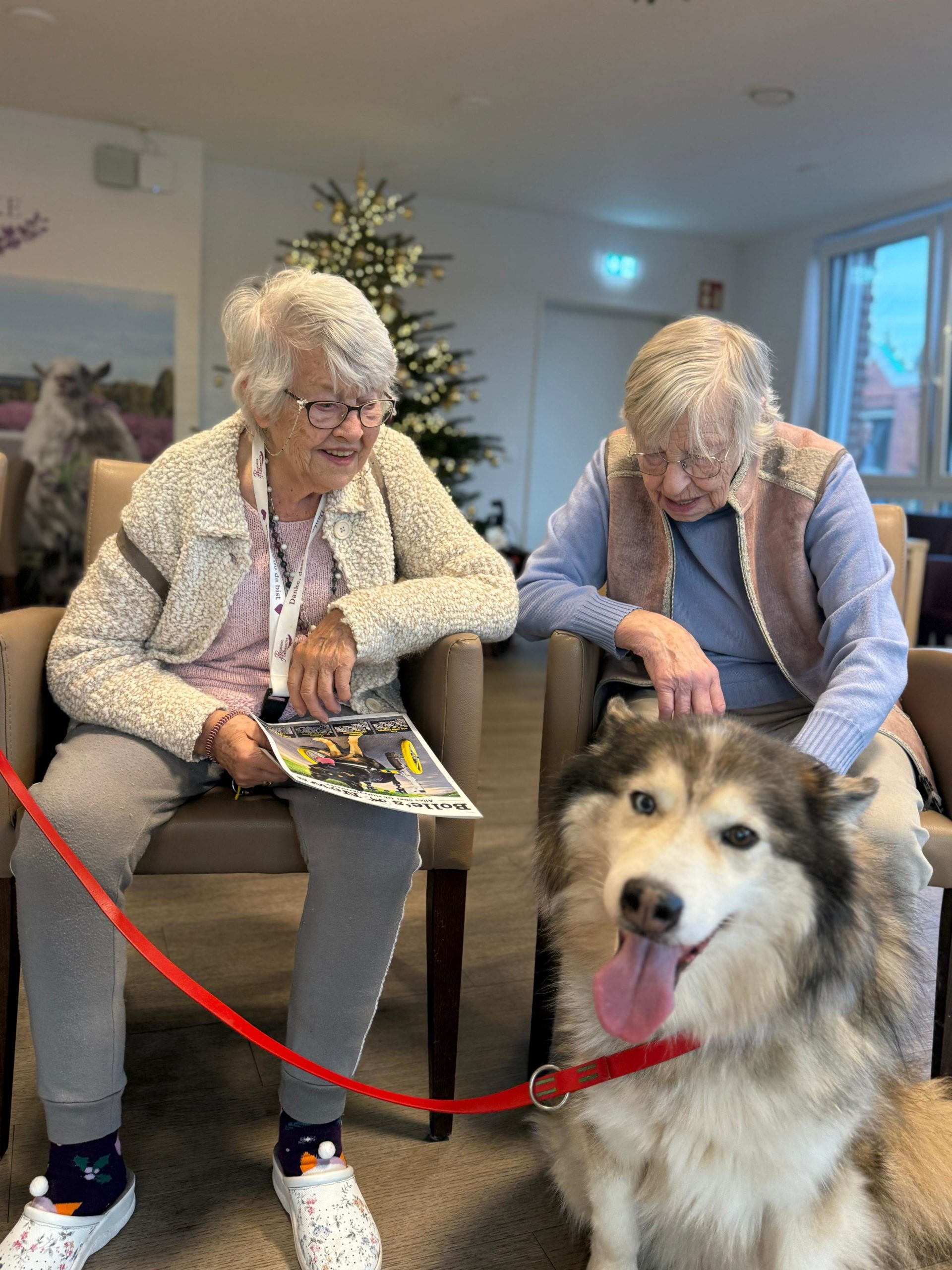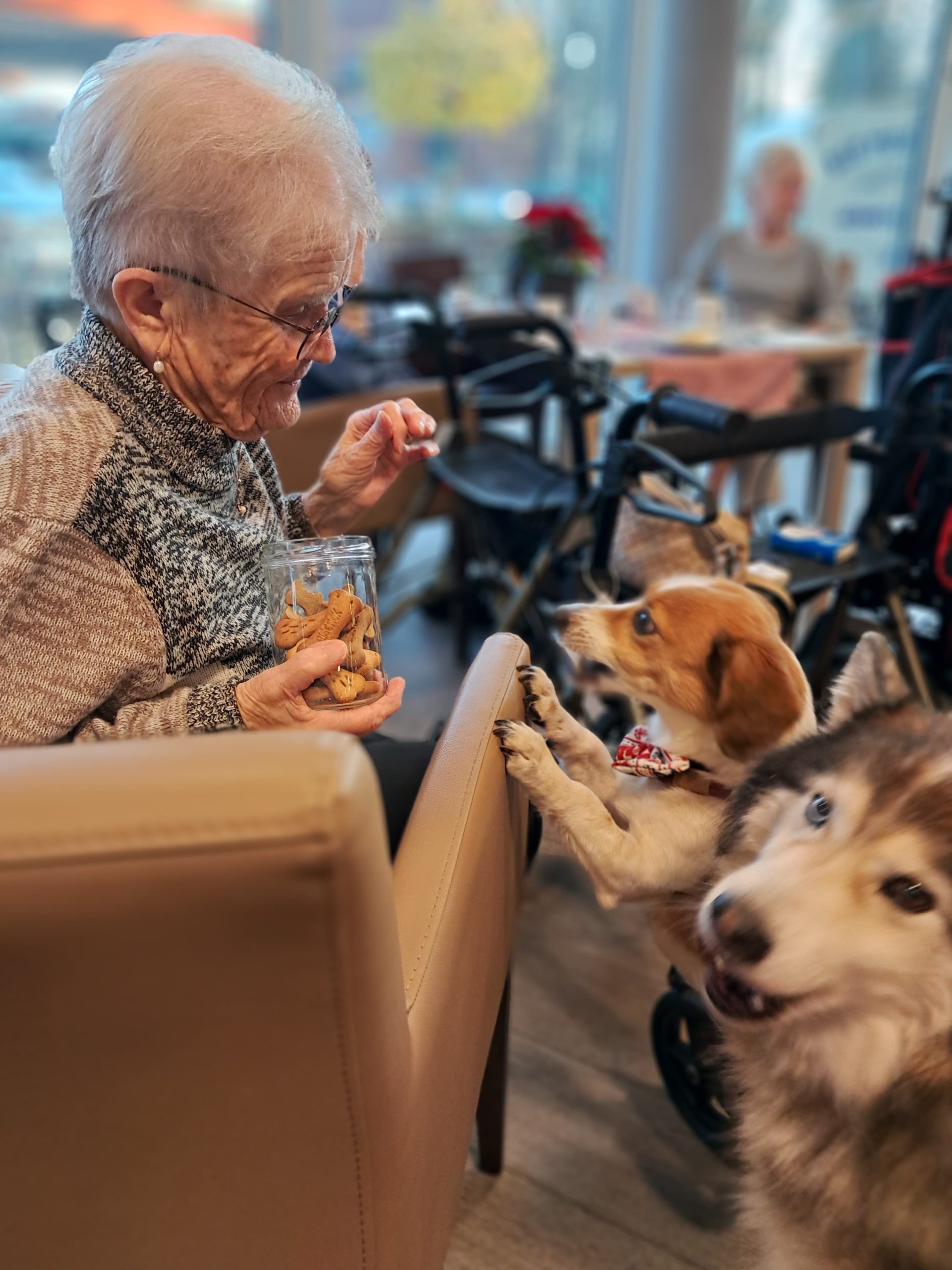 Der De Hun’nenhof war mit gleich fünf ihrer wunderbaren Hunde bei uns. Die Mitarbeitenden stellten sich und ihre Arbeit vor – und unsere Bewohnerinnen und Bewohner durften die Hunde ganz in Ruhe kennenlernen, streicheln und Zeit mit ihnen verbringen. Die Freude war riesig! 💛