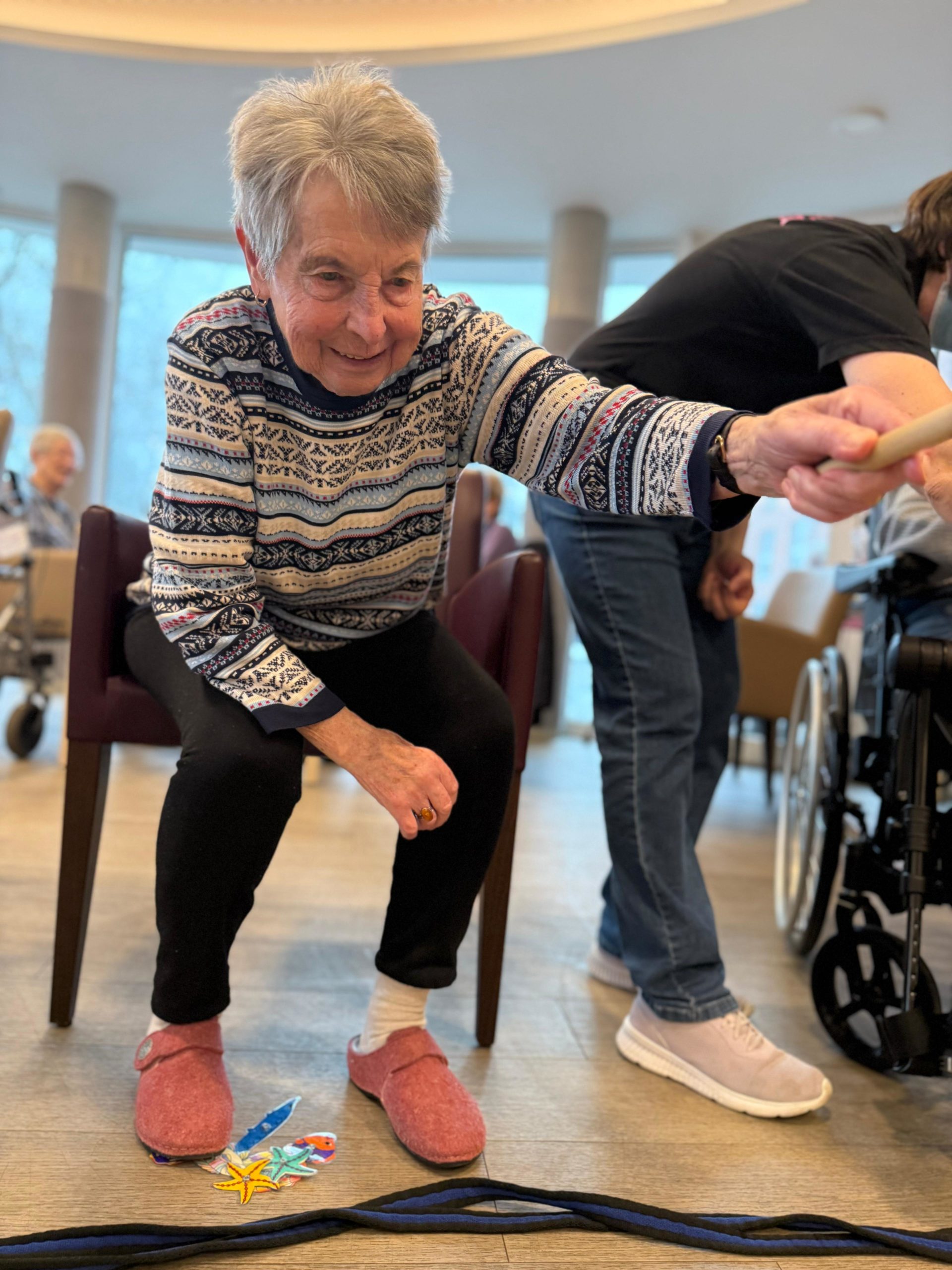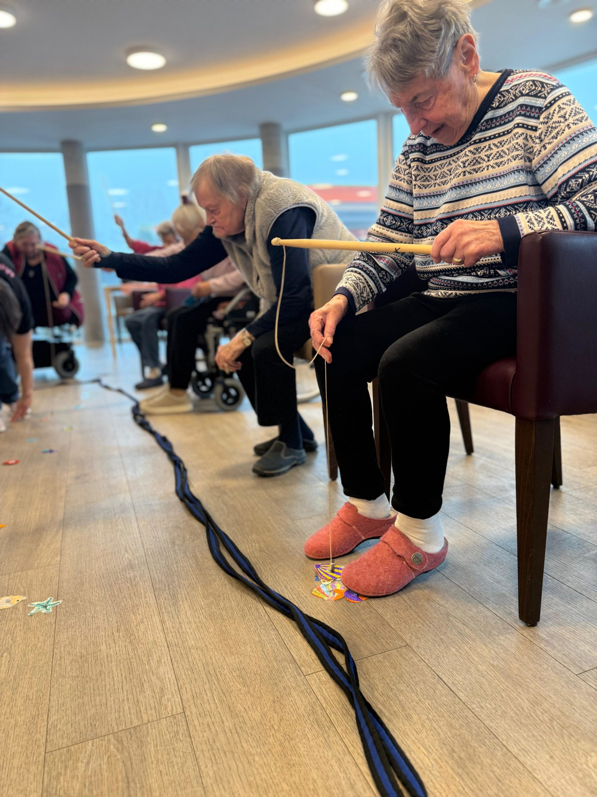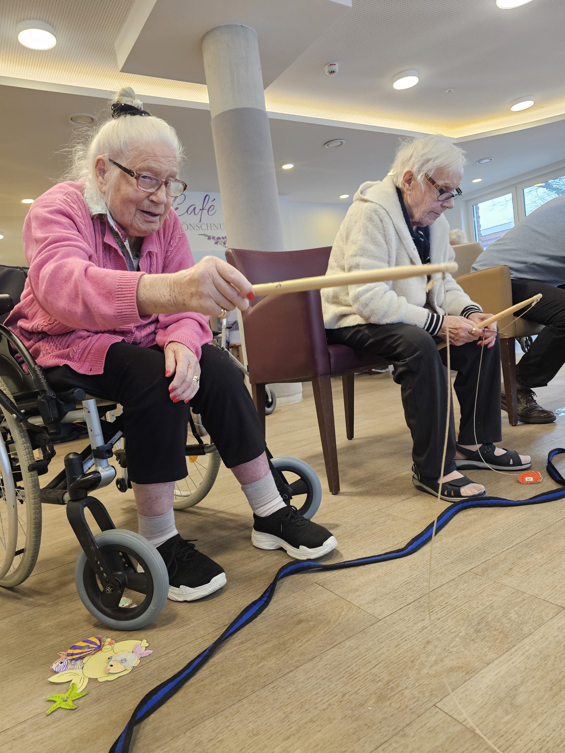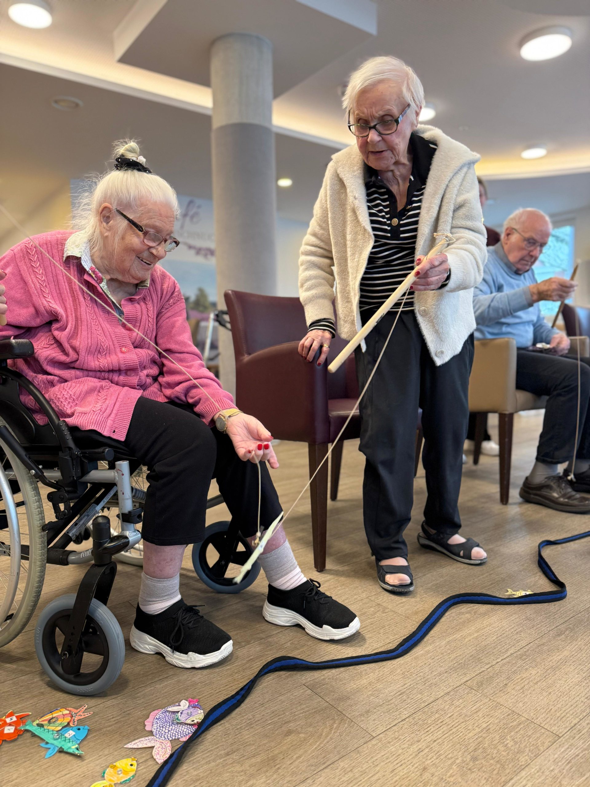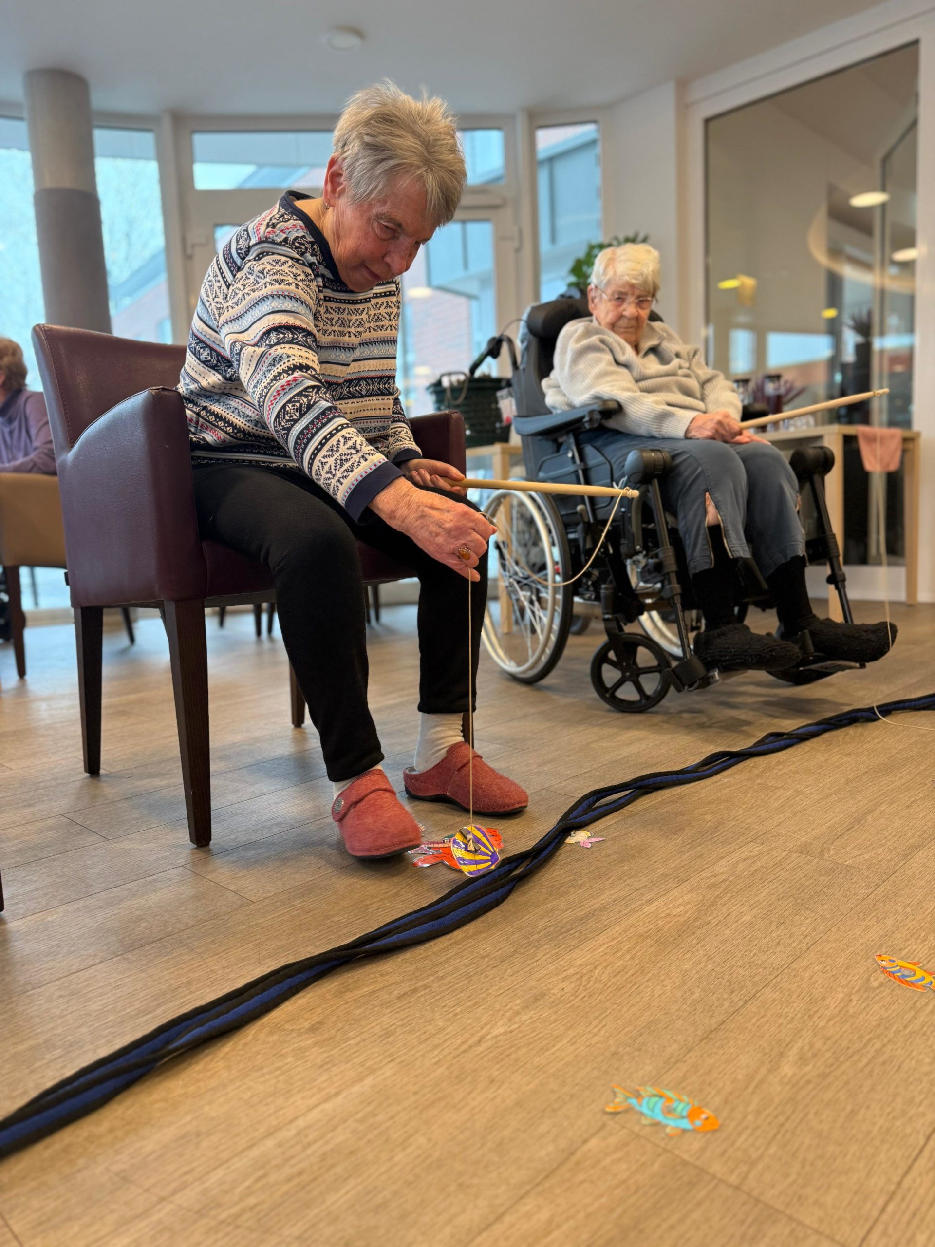 Mit viel Freude und Ehrgeiz haben unsere Bewohner und Bewohnerinnen ihr selbstgebasteltes Spiel „Fische angeln“ ausprobiert.