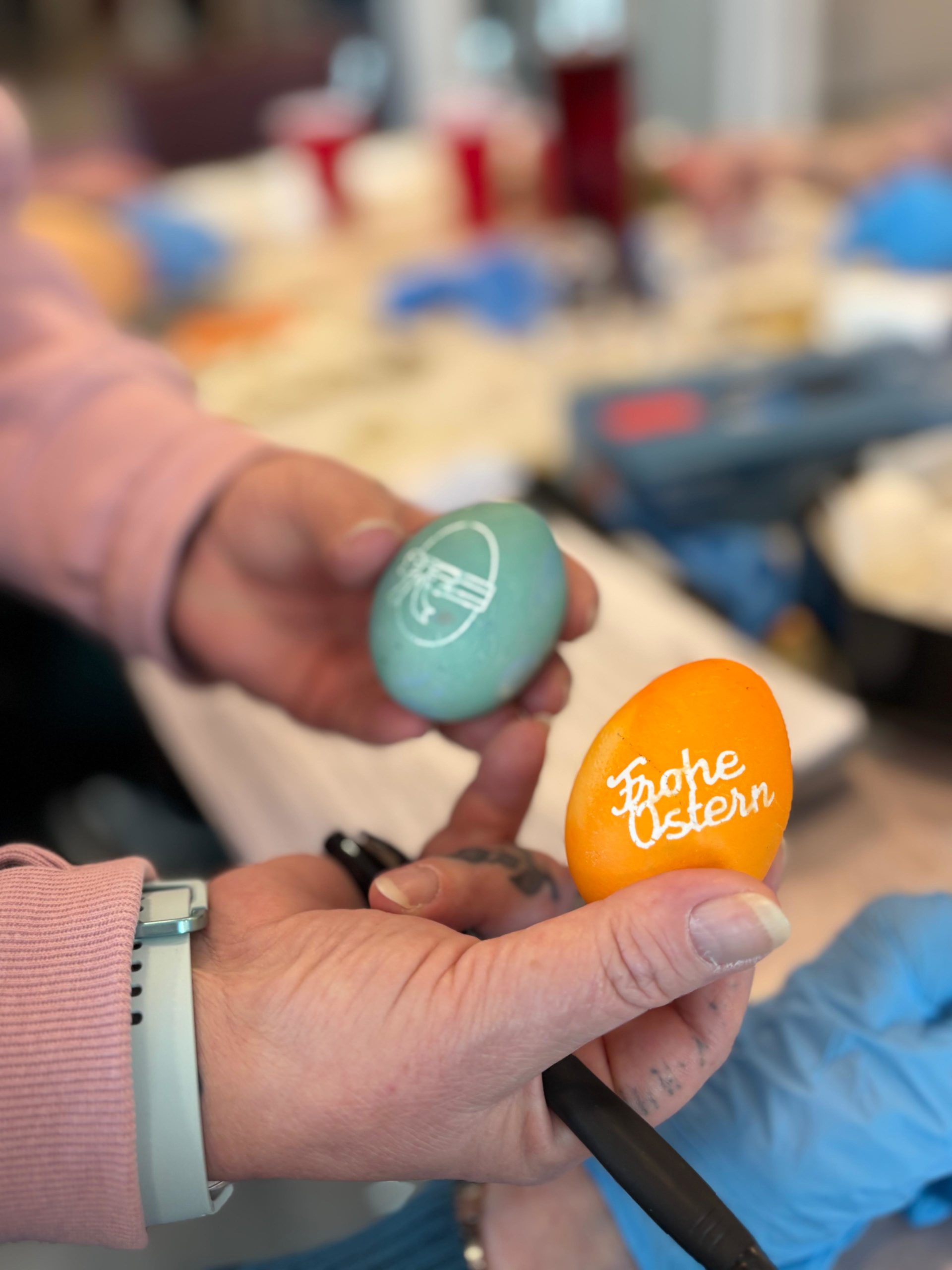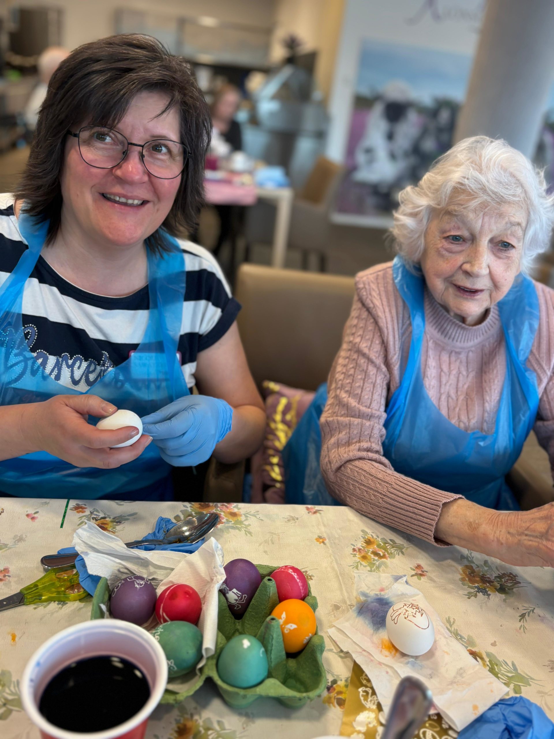 Gemeinsam haben unsere Bewohnerinnen und Bewohner Eier gefärbt und liebevoll beklebt. Dabei konnten sich alle kreativ entfalten und ihrer Fantasie freien Lauf lassen – es wurde gelacht, ausprobiert und natürlich auch ein bisschen gestaunt über die vielen schönen Ergebnisse.