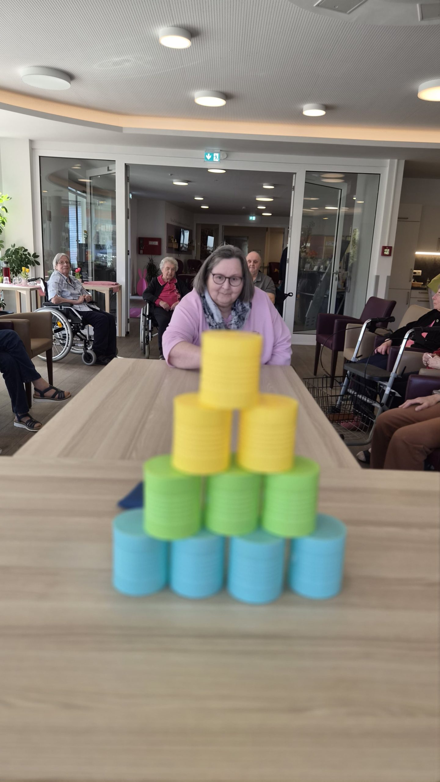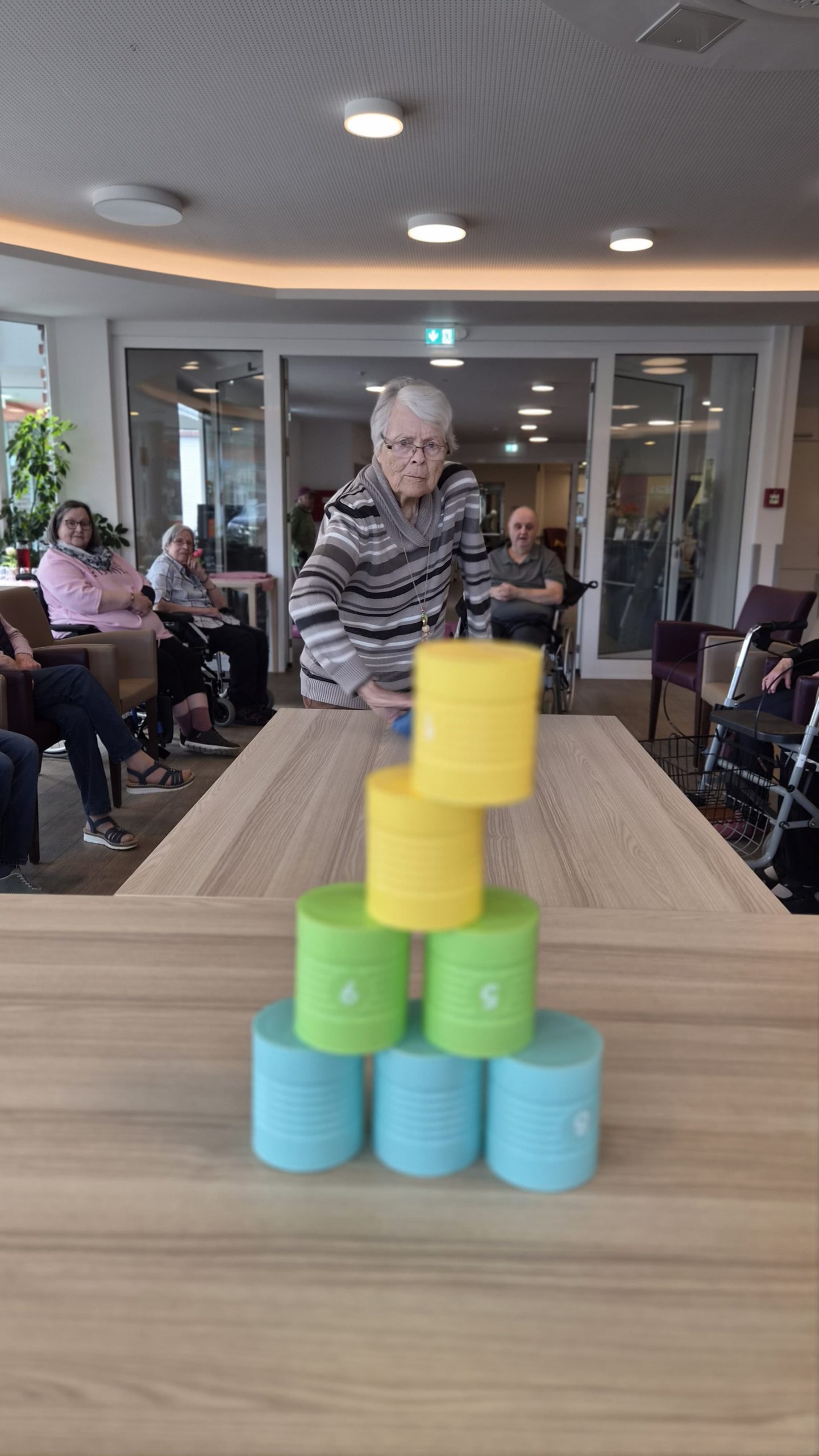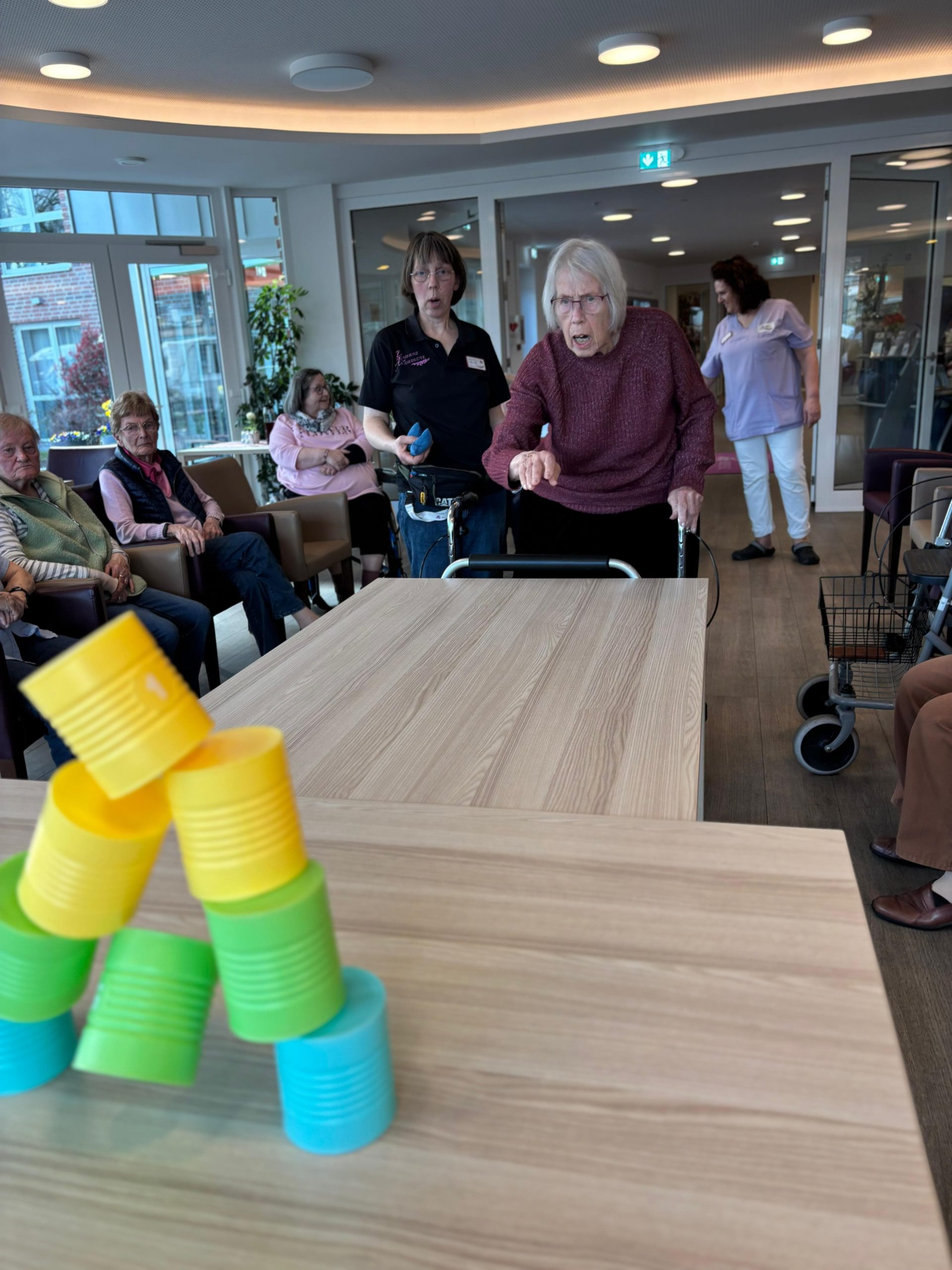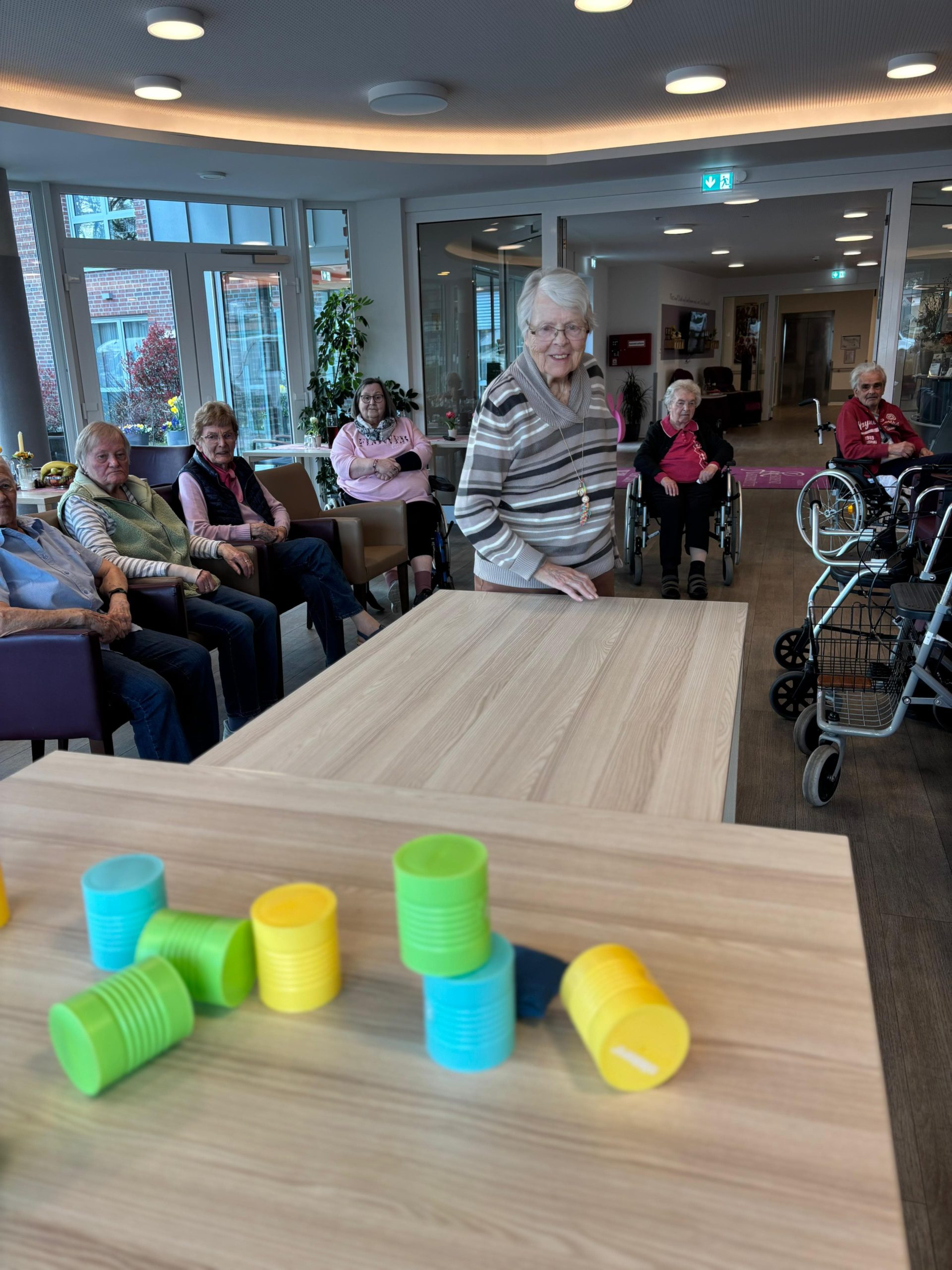 Unsere Bewohnerinnen und Bewohner hatten jede Menge Spaß und ganz nebenbei wurde auch die Koordination trainiert. Ein rundum gelungener Nachmittag voller Lachen und guter Laune! 💛