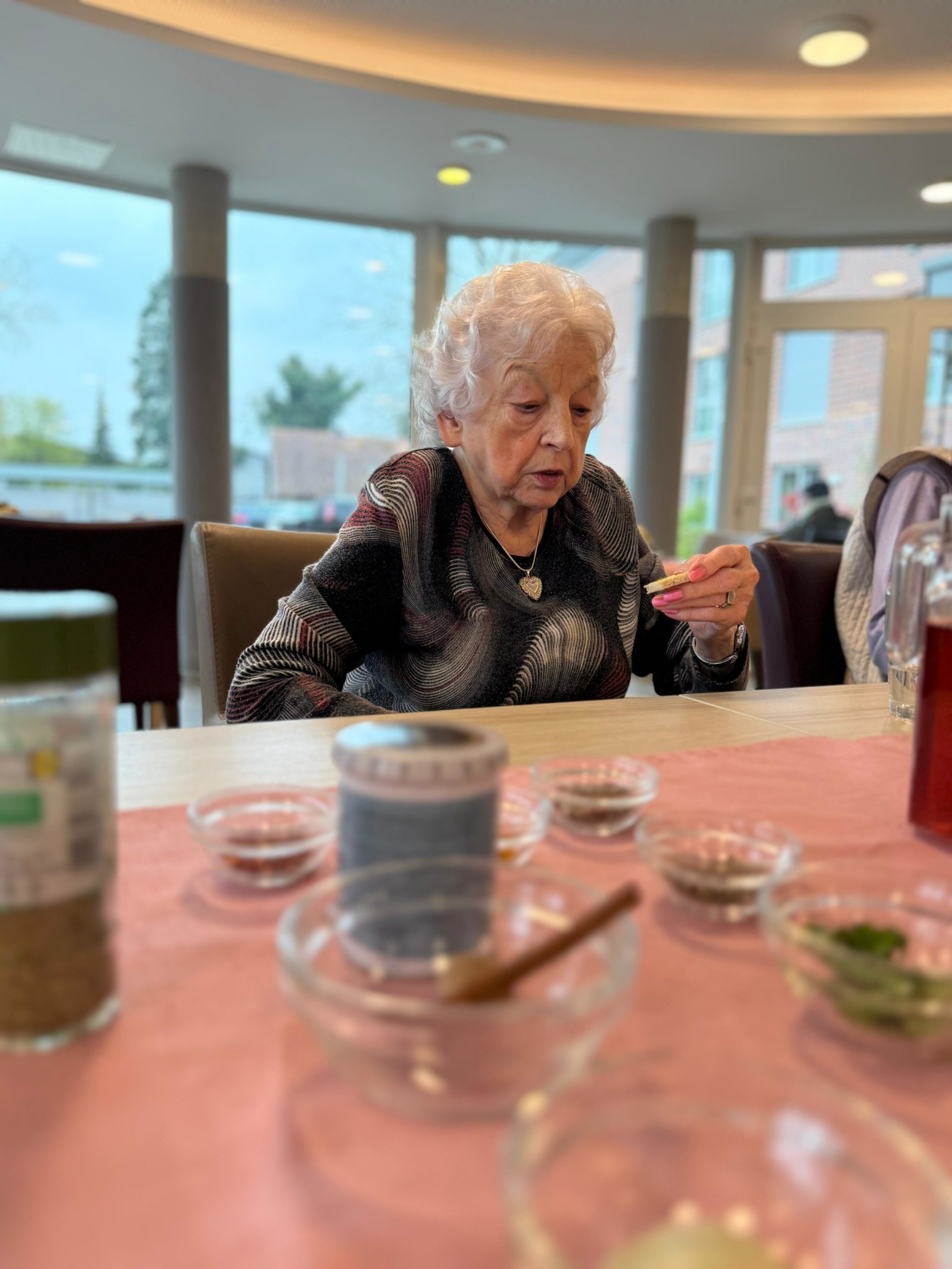 Unsere Bewohnerinnen und Bewohner haben sich gemeinsam auf eine sinnliche Reise durch die Welt der Kräuter und Gewürze begeben. Beim Riechen, Fühlen und Erinnern wurden viele schöne Momente wach – Geschichten wurden geteilt, Erfahrungen ausgetauscht und die Sinne neu angeregt.